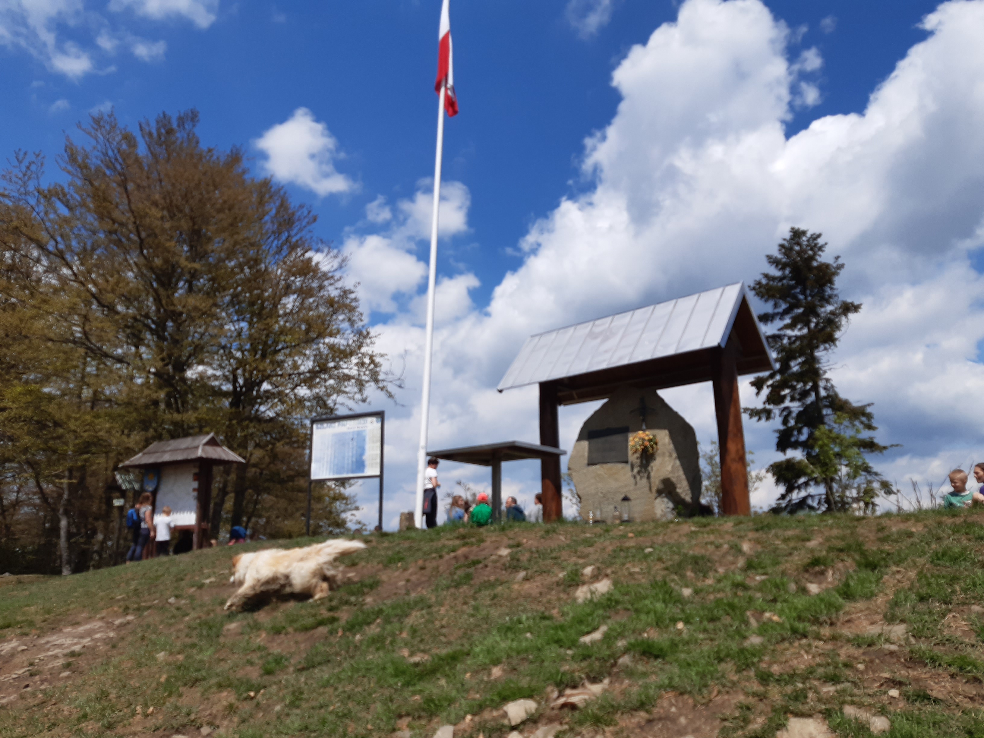 Na szczycie znajduje się pomnik poświęcony papieżowi Janowi Pawłowi II, który był na Strzeblu dwukrotnie jeszcze jako Karol Wojtyła. Przy ołtarzu i pomniku powiewa flaga Polski. W pobliżu krzyż upamiętniający śmierć w tym miejscu księdza z Krakowa. Dzięki akcji Odkryj Beskid Wyspowy powstało tu kilka miejsc do wypoczynku (ławki, stoliki). Jeśli macie ochotę można na szczycie odpocząć, zapalić grilla (tylko nie, gdy jest susza!).