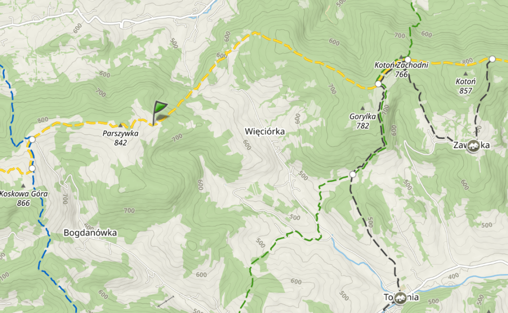 Spacerując po wschodniej części Pasma Koskowej Góry, zwanej Parszywką, dotrzeć można do urokliwej kaplicy zbudowanej z kamienia. Pięknie prezentuje się z beskidzkimi pagórkami w tle. Równie ciekawa jest historia powstania kaplicy św. Anny na Polanie-Więciórce. Znają ją doskonale okoliczni mieszkańcy, a dziś chciałam ją przybliżyć i Wam. Obszerniejszą od znanej mi wersji legendy znalazłam w książce autorstwa pana Mariana Cieślika „Kliszczaków legendy, podania, opowieści”. Czas byście i Wy ją poznali. Świetnie pokazuje, że nawet złe uczynki można przekłuć w coś dobrego. Na końcu wpisu znajdziecie świetną propozycję spaceru po Parszywce, której celem jest właśnie kaplica św. Anny.