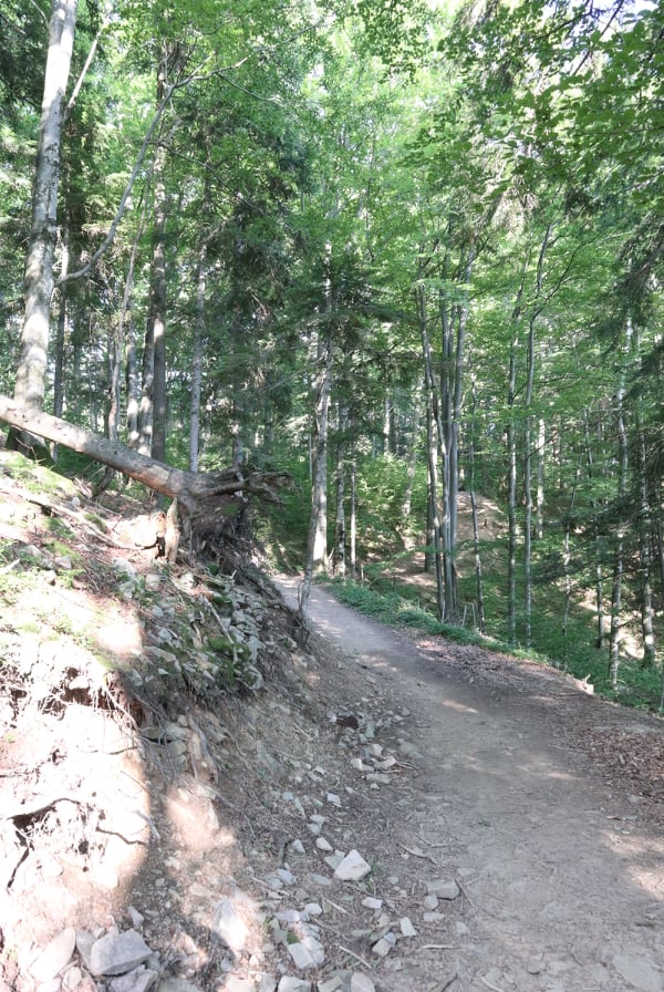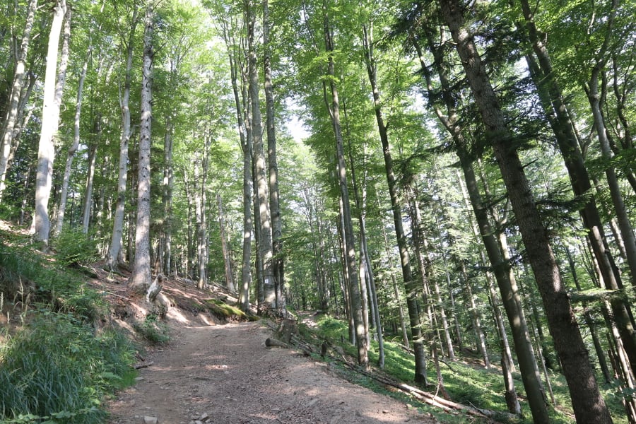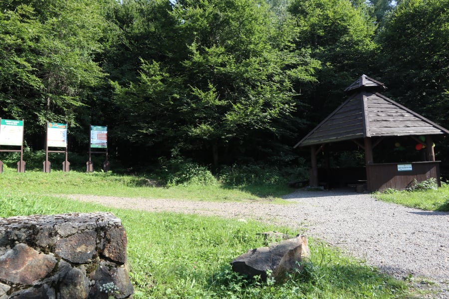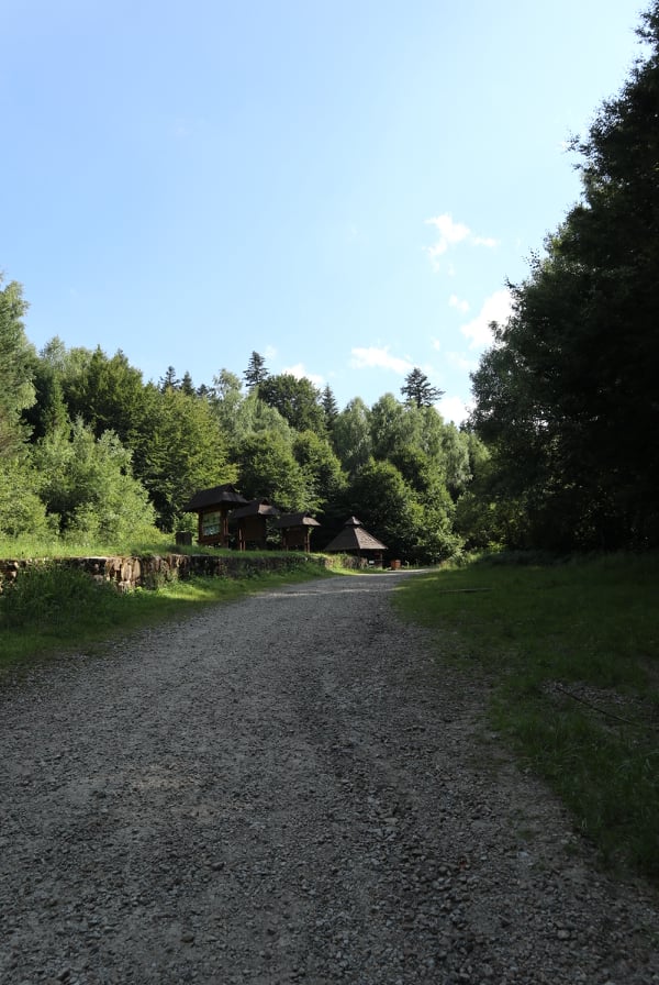 Trasa jaką wybraliśmy wiedzie zieloną ścieżką przyrodniczą, którą przygotowało Nadleśnictwo Cisna ma swój początek w Cisnej na Zamościu (z centrum w kierunku Wetliny). Zaraz za „Szynkiem na Zamościu”, będzie tabliczka w prawo prowadząca do ścieżki. Bardzo łatwo tutaj trafić. Na końcu wpisu zamieszczam Wam pinezkę z miejscem, gdzie parkowaliśmy samochód. Ścieżka jest bardzo dobrze oznakowana. Jeszcze przed wejściem na nią znajduje się wiata z paleniskiem na ognisko oraz tablice informacyjne o okolicznej faunie i florze. Samo wejście ma też specjalną drewnianą bramę i mapę.
