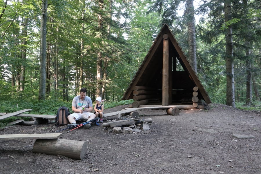 Tuż obok wieży znajduje się wiata, w której można schronić się przed deszczem, albo po prostu zjeść posiłek i odpocząć. Są też ławeczki przed wiatą.