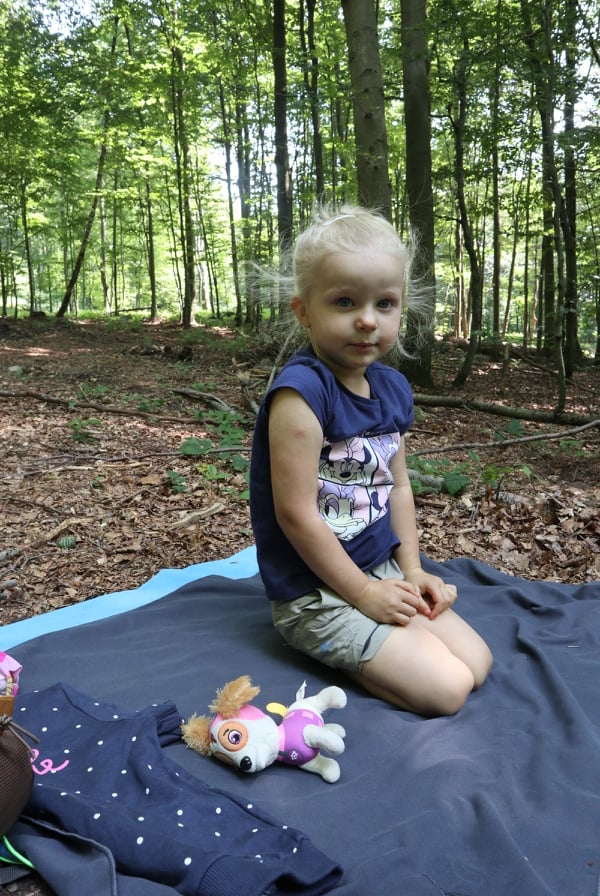 Podczas gdy ja z córką piknikowałam pod szczytem, zbierając relację kolejnych zdobywców Lackowej, reszta naszej ekipy wspięła się na szczyt. Po pokonaniu ściany płaczu, już tylko kilka minut łagodnego spaceru dzieli nas od najwyższego punktu. Wierzchołek jest zalesiony, dlatego nie uświadczycie na nim widoków na piękną okolicę. Możecie natomiast odpocząć na drewnianych ławeczkach i przybić pieczątkę.