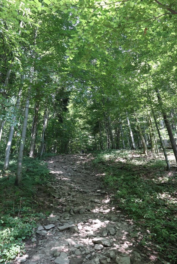 Jako drogę powrotną obraliśmy tę samą trasę. Od wielu osób, z którymi rozmawiałam na szlaku, dowiedziałam się, że popularną opcją na zdobycie szczytu od tej strony jest wyjście z wsi Izby. Po około 1,5 km spaceru nieoznakowaną drogą dociera się do Przełączy Beskid, a stąd już czerwonym szlakiem na szczyt.