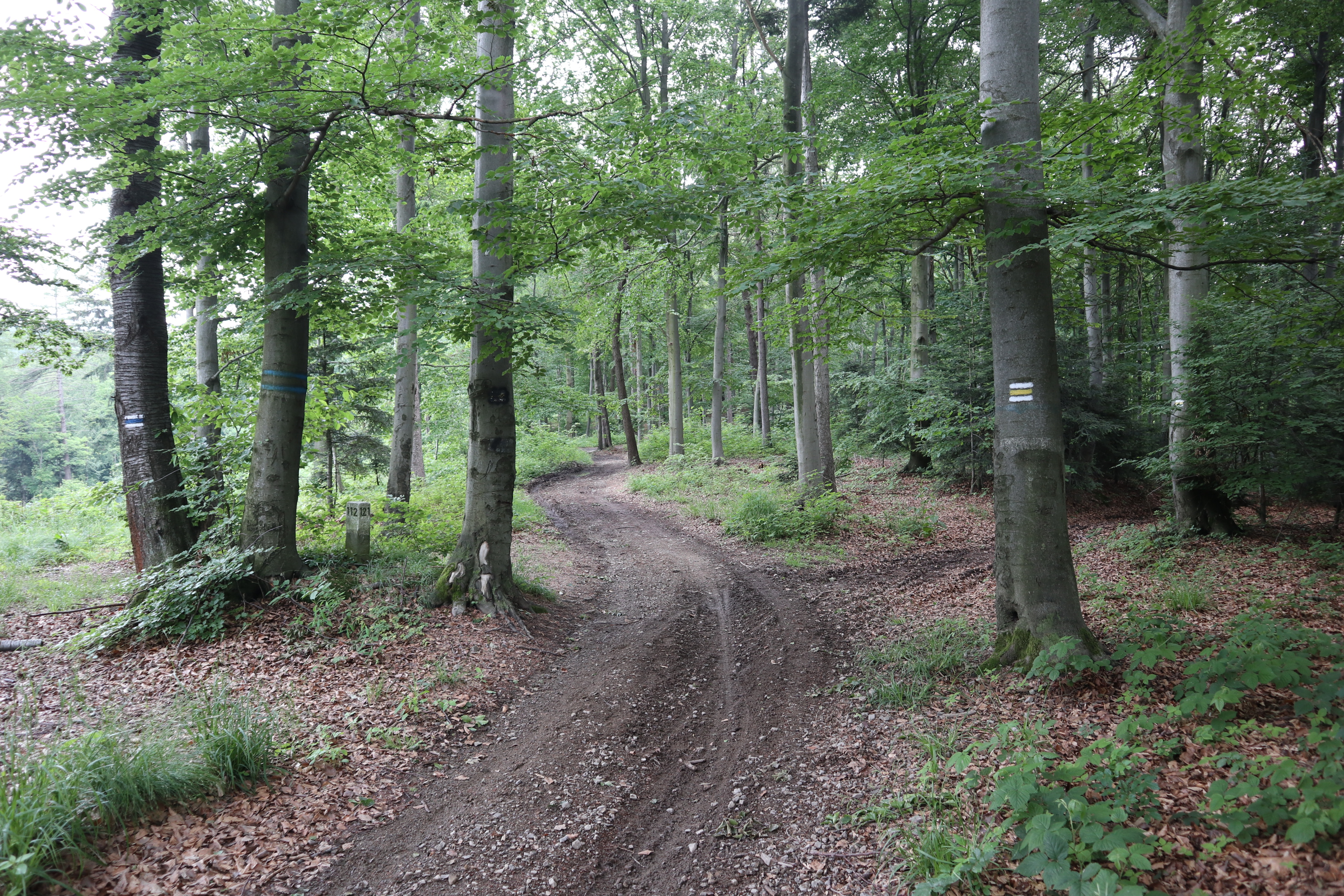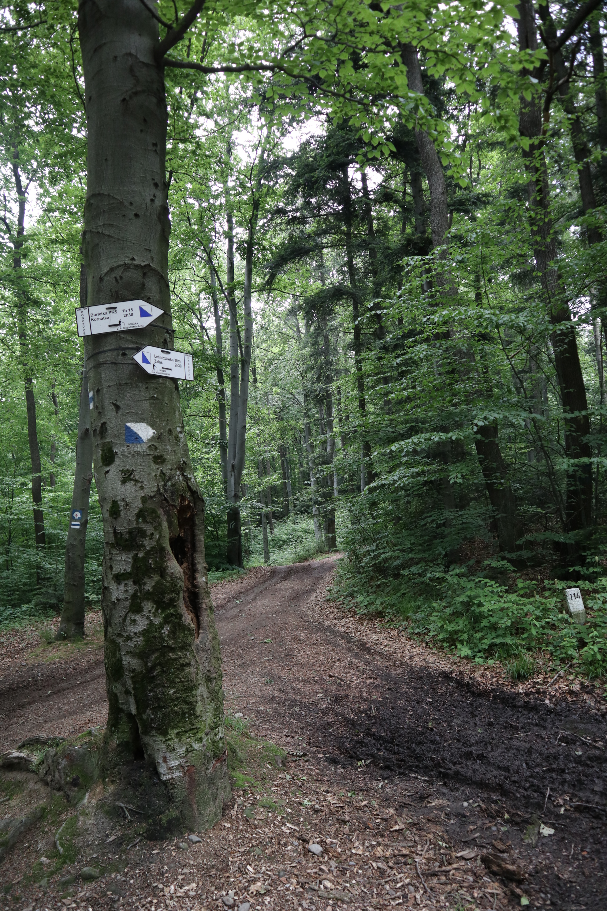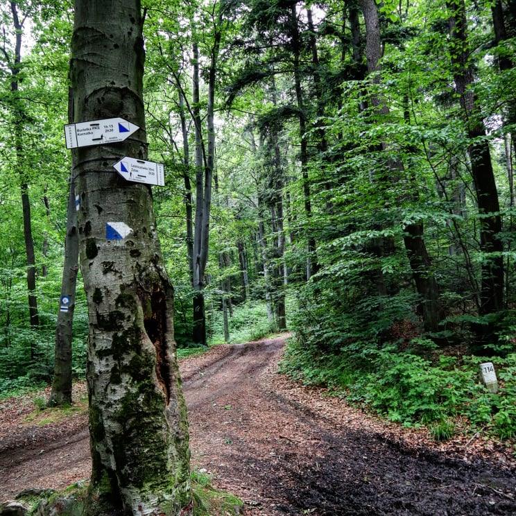 Zwolenników widokowych ścieżek informuję, że ta do takich nie należy. Trasa wiedzie przez malowniczy mieszany las, a zza drzew rzadko coś widać. Mimo wszystko szczególnie jesienią będzie cieszyć Wasze oczy mieniącymi się kolorami liści na drzewach. To też trasa, którą spokojnie nawet z małymi dziećmi można pokonywać zimą.