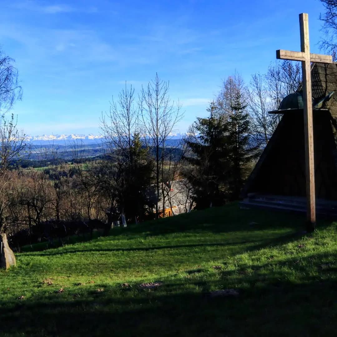 Kliszczacka Koliba znajduje się tuż przy zielonym szlaku, którym dojdziecie nie tylko na Groń Tokarski i Kotoń, ale także do Skomielnej Czarnej. To fragment trasy, którą opisałam we wpisie: Z Myślenic do Skomielnej Czarnej… przez góry! Wybierając ją na wycieczkę możecie po drodze nie tylko czerpać z dobroczynnego wpływu leśnej kąpieli, ale i podziwiać widoki np. na masyw Stołowej Góry. Taki spacer można zakończyć tuż obok kościoła w Skomielnej Czarnej przy okazji odwiedzając zabytkową kaplicę dworską. Leży ona na zboczu wzgórza Kokorzyk i pochodzi z XVIII wieku.