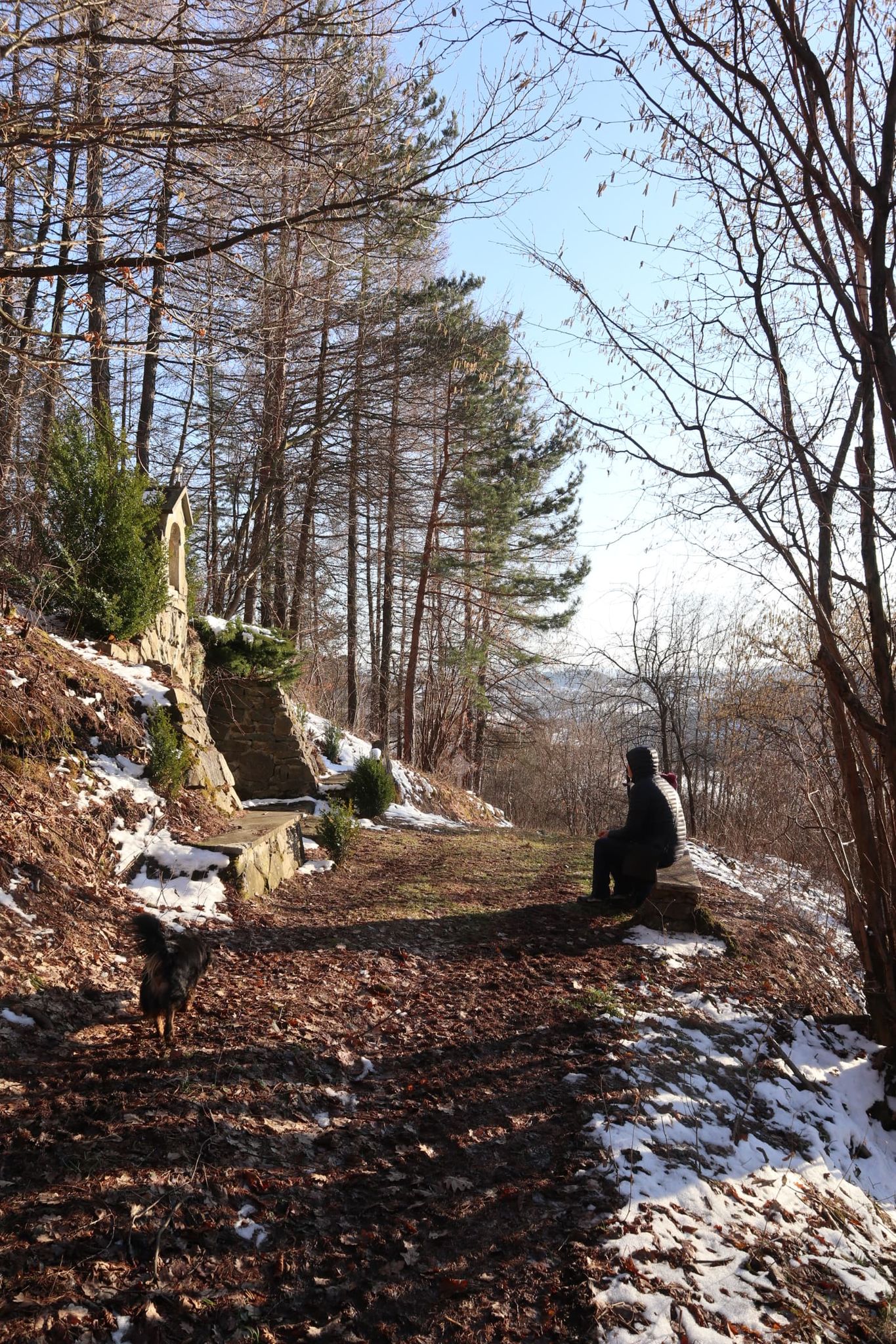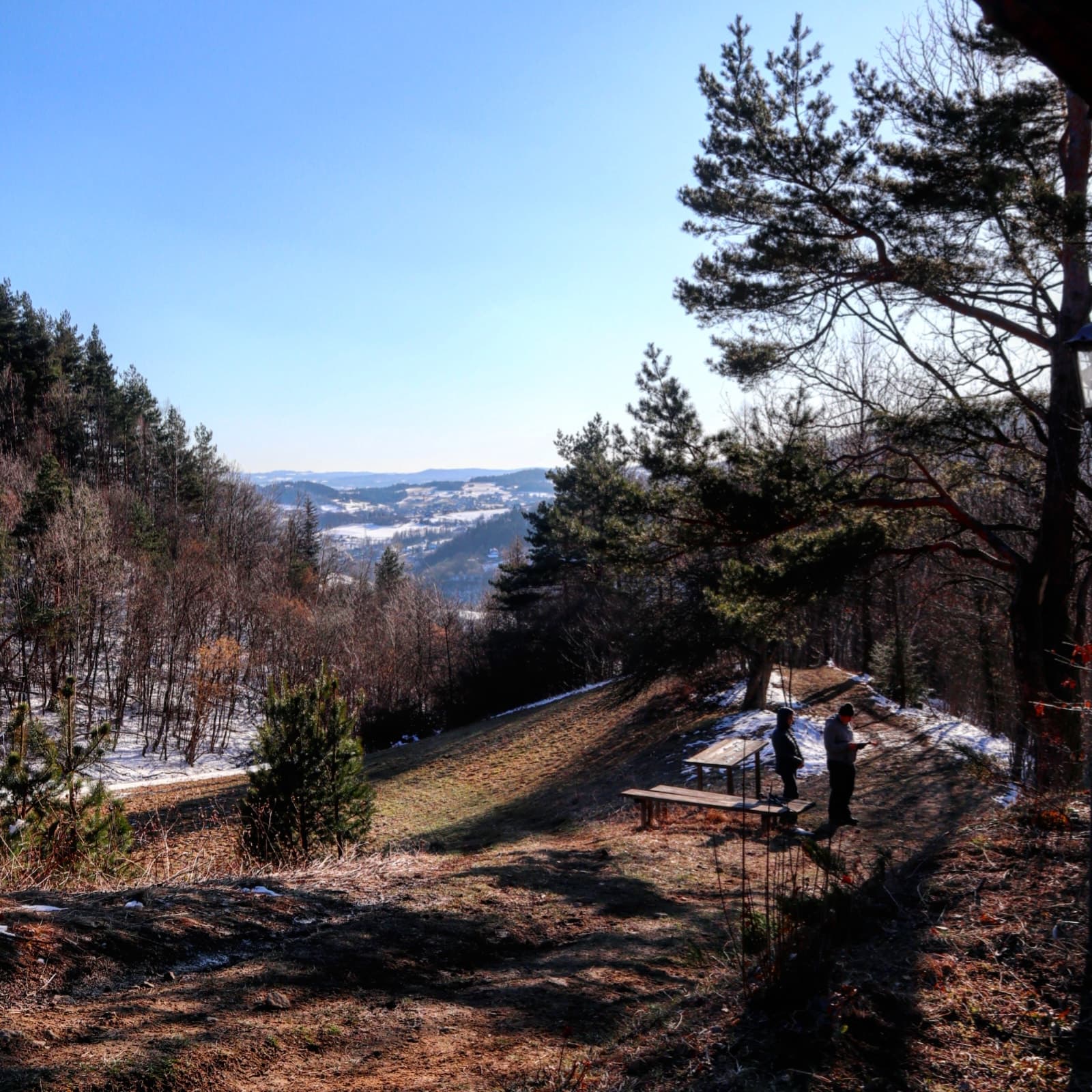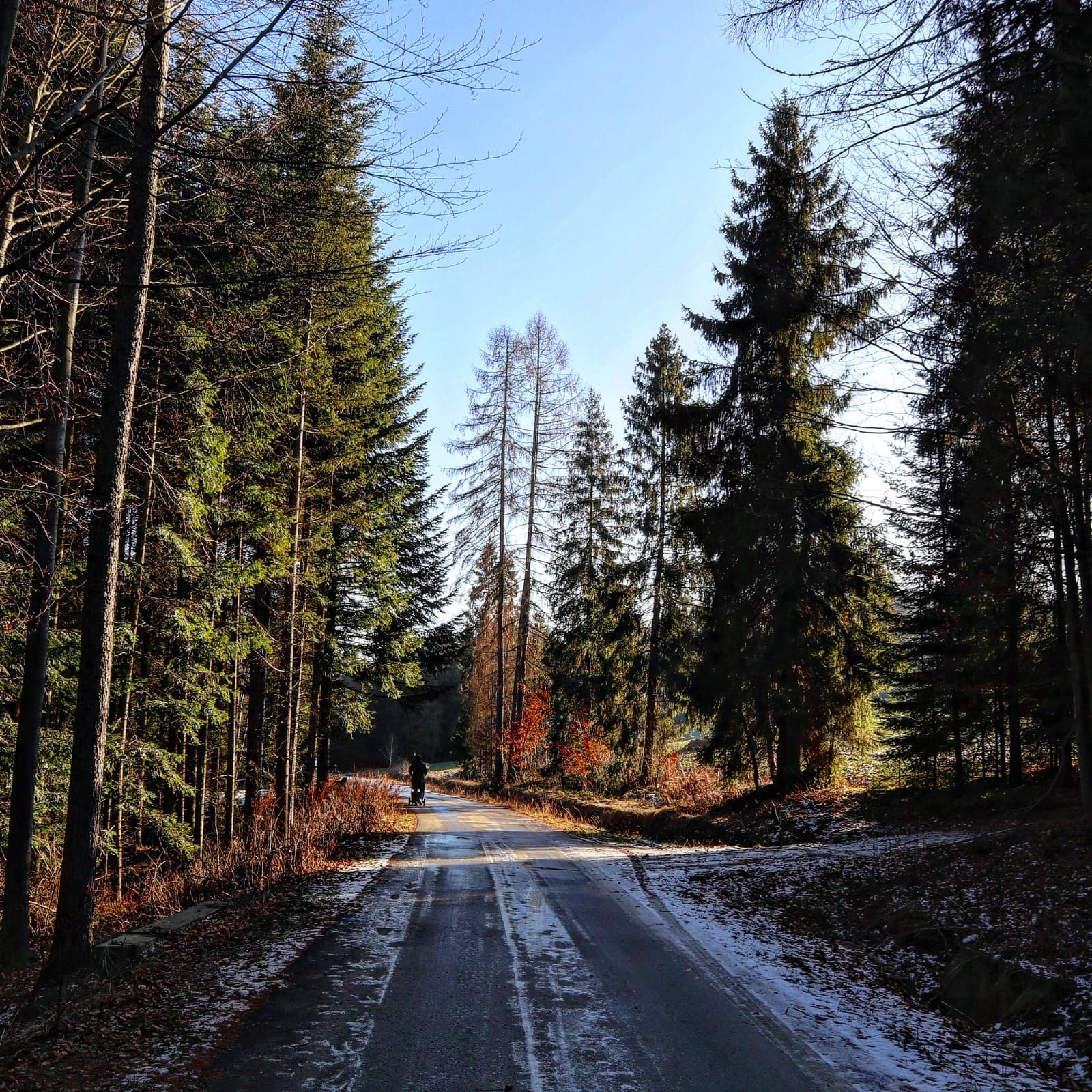 Jeśli tak jak my, spacerujecie w towarzystwie niemowlęcia i chcielibyście wybrać miejsce odpowiednie do jazdy wózkiem, to podjedzcie samochodem pod cmentarz w Tokarni albo wyjedzcie wyżej i zaparkujcie pod leśniczówką. Droga, która pokrywa się z czarnym szlakiem jest asfaltowa i rewelacyjnie spaceruje się tutaj z wózkiem w otoczeniu pięknych pejzaży i drzew.