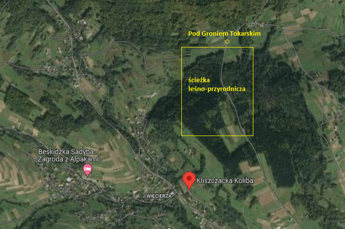 Jeśli wyjdziecie z Kliszczackiej Koliby i polną drogą pokierujecie się (poza szlakiem) pod górę, to wkrótce dojdziecie do czarnego szlaku a nim do Gronia Tokarskiego (556 m n.p.m.). Jeśli nie lubicie chodzić bez wyznaczonych szlaków, to wystarczy drogą asfaltową (w kierunku Więciorki) dojść do zielonego szlaku i nim dotrzeć do Tokarskiego Gronia.