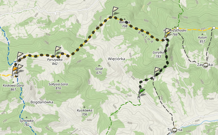 Nie byłabym sobą, gdybym przy okazji pobytu w Tokarni nie poleciła Wam spaceru grzbietem Koskowej Góry. Dla aktywnych i lubiacych dłuższe trekkingi polecam na Koskową wybrać się szlakiem. Mapę znajdziecie poniżej