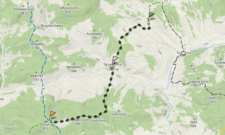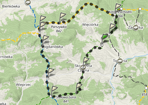 Gdybym przyjechała do Tokarni na weekend, a pogoda była na piątkę, podobnie jak moja kondycja, to zdecydowanie jeden dzień poświeciłabym na wędrówkę. Wszystko o czym wcześniej pisałam zobaczyłabym robiąc sporą pętlę. Z Tokarni wyruszyłabym przez Groń Tokarski na Koskową Górę a stamtąd na Stołową Górę. Potem zeszłabym do Skomielnej i stamtąd wróciłabym do miejsca docelowego. Taka trasa zajmuje około 8,5 godziny. Przy dobrej pogodzie macie fantastyczną wycieczkę całodzienną przez lasy mieszane z cudownymi widokami. Wyruszacie po śniadaniu, a przerwę obiadową możecie sobie zrobić np. na Parszywce we Wrzosowym Dworze, potem ognisko/piknik na Stołowej Górze i dzień pełen atrakcji za Wami.