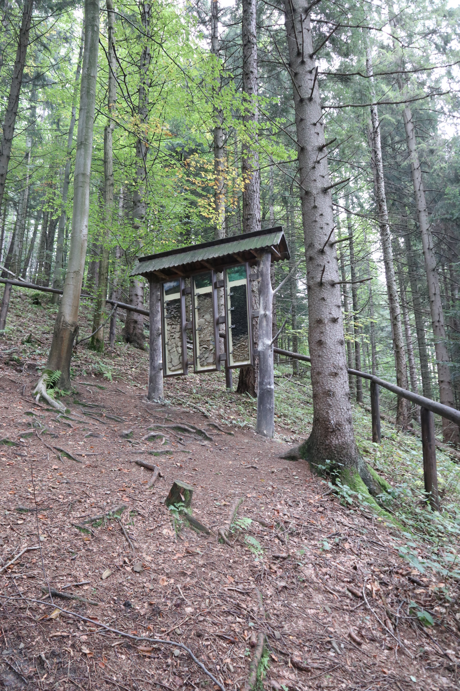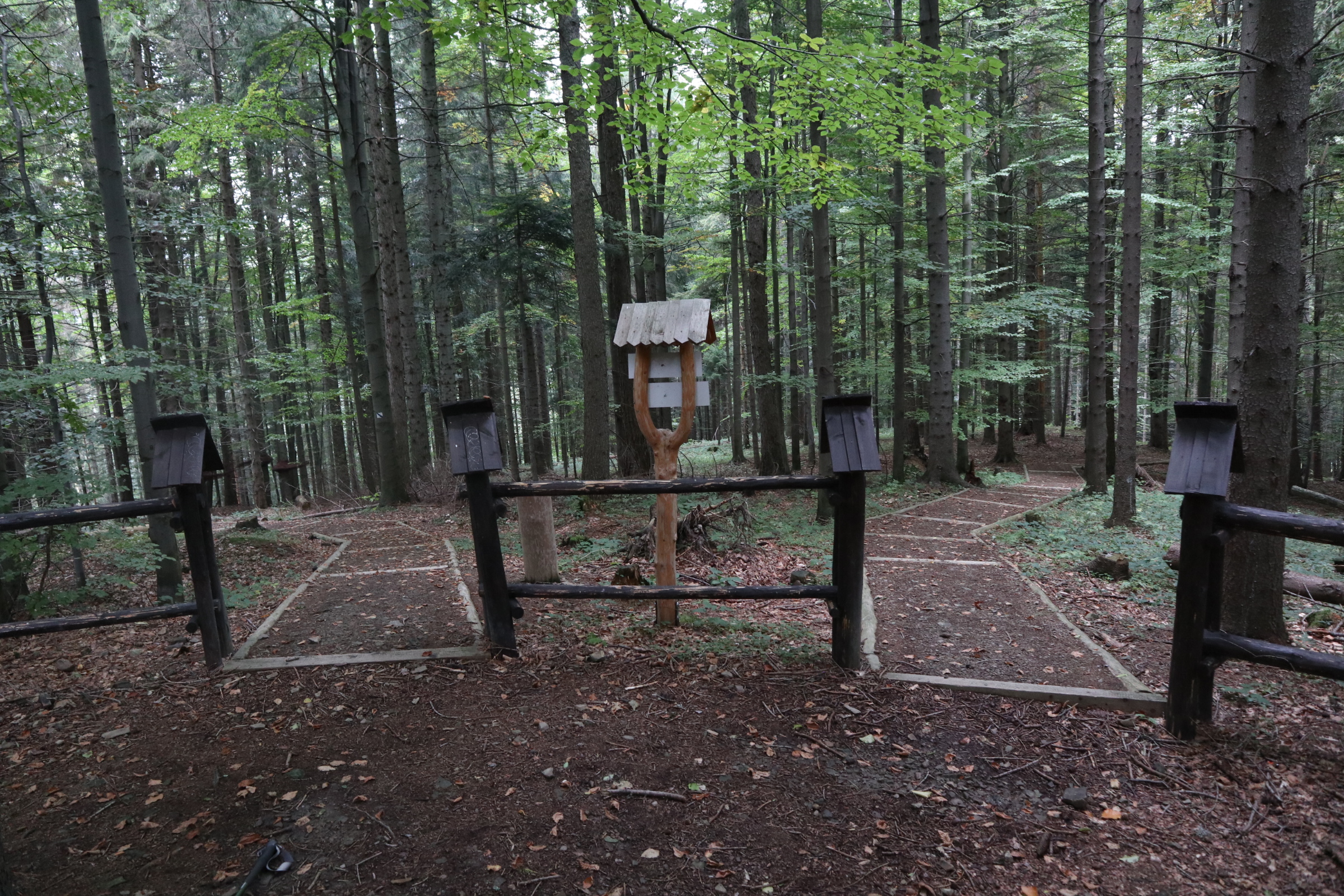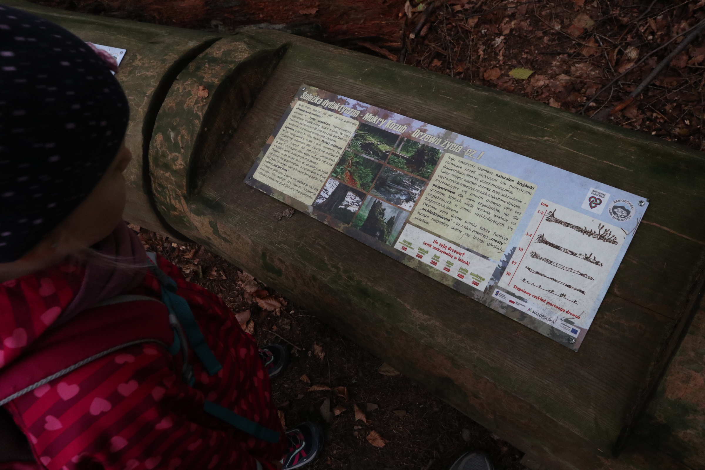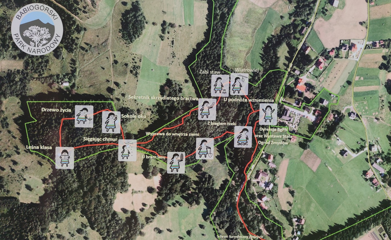 Wyprawa do wnętrza ziemi? Co kryje i pamięta las? Gdzie mieszkają ptaki? To tylko kilka pytań na które odpowiedź znajdziecie odkrywając kolejne z 11 przystanków ścieżki. „Mokry Kozub” to jedna z trzech ścieżek dydaktycznych „BABIOGÓRSKIEJ PARZENICY”. Ścieżkę otwarto w 2012 roku a odnowiono w 2020 roku. Rozpoczyna się tuż obok budynku dyrekcji Babiogórskiego Parku Narodowego i Wystawy Stałej BgPN w Zawoi. To właśnie na parkingu siedziby parku zostawiliśmy samochód i ruszyliśmy na szlak. Warto jednak wydłużyć sobie nieco spacer i zaparkować przy Polanie Odkrywców. Tam także jest parking i spory plac zabaw z miejscami na odpoczynek.