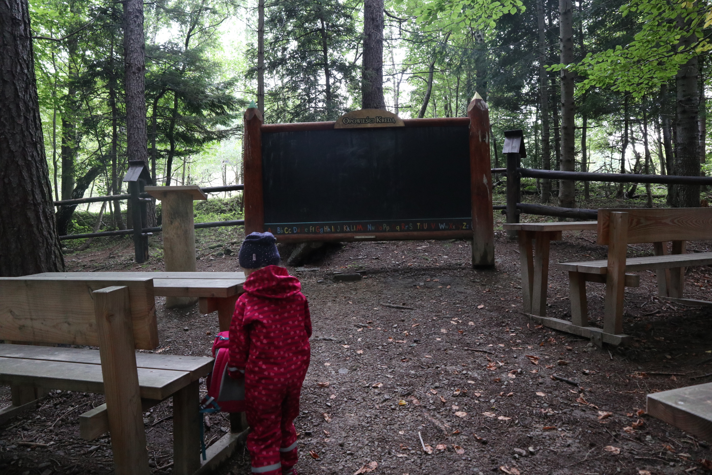 Warto zabrać kolorowe kredy i w leśnej klasie, która jest chyba największą atrakcją dla dzieci namalować coś na tablicy. My następnym razem na pewno o niej nie zapomnimy.