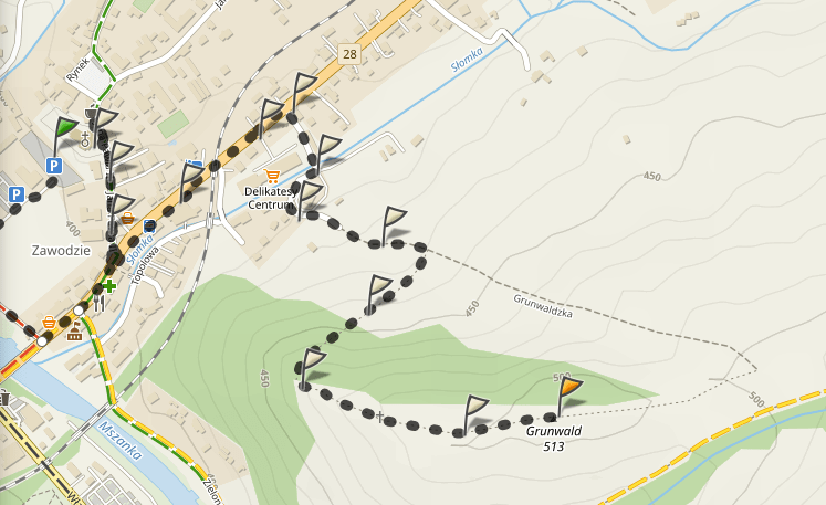 Samochód można zaparkować na parkingu parafii św. Michała Archanioła. Potem nie cofajcie się, jak sugerują google maps, ale skróćcie sobie trasę przechodząc przez teren kościoła. Następnie w dół ul. Jana Pawła II, aż do głównej ulicy Marszałka Piłsudskiego i tutaj skręcacie w lewo (w kierunku Limanowej) i idziecie aż miniecie Delikatesy Centrum. Potem skręcacie w ulicę Grunwaldzką i zaraz po przekroczeniu mostku na rzece Słomka zobaczycie kierunkowskaz ścieżki spacerowej na Grunwlad. Idziecie ulicą cały czas pod górkę, aż do kolejnego kierunkowskazu przy którym skręcicie w prawo.