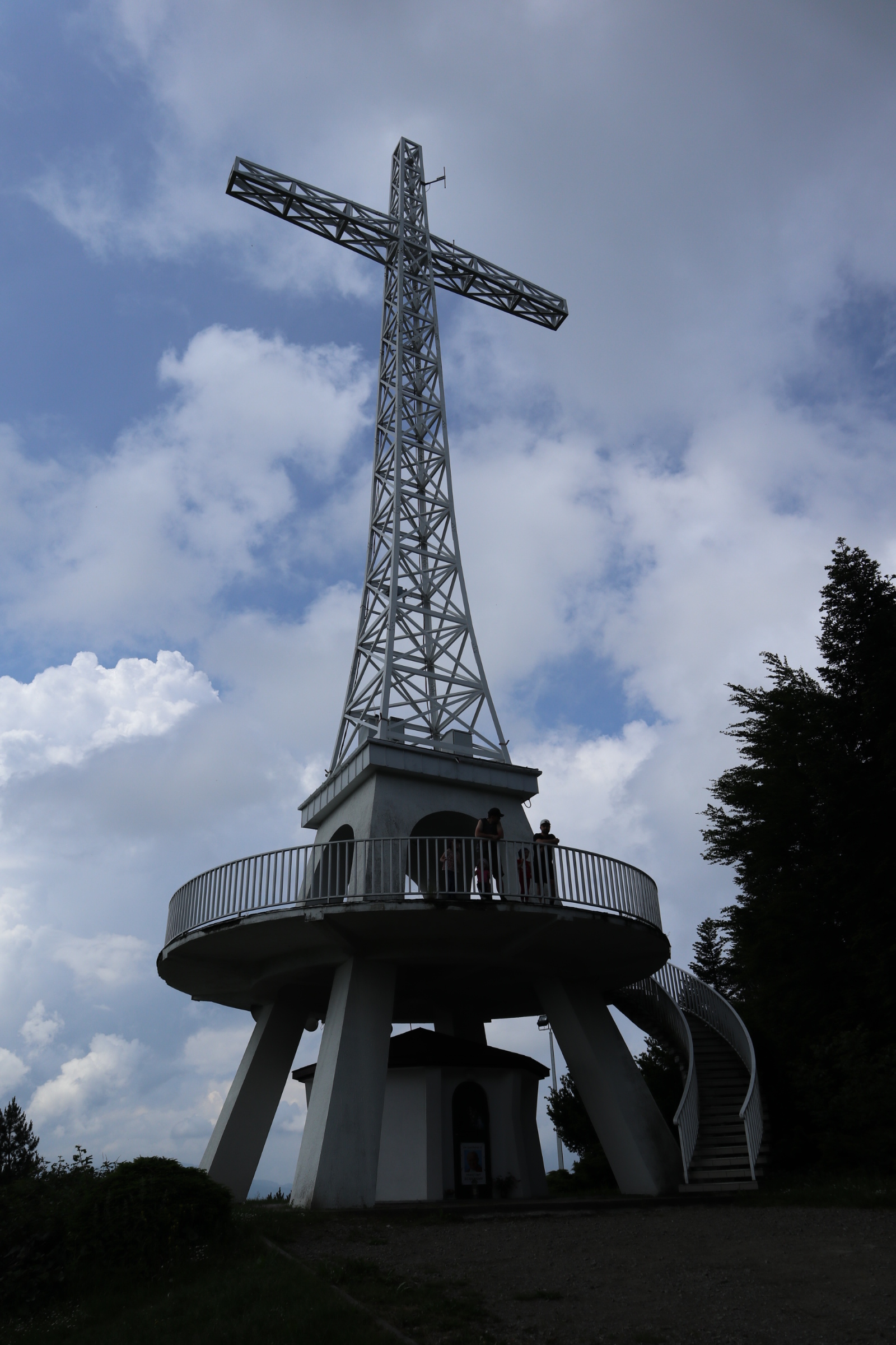 Na ostatnim odcinku przed szczytem jest już dość równo, i wyłaniają się ładne widoki. Na szczycie, znajduje się zbudowany w latach 1997–1999 37-metrowy krzyż z tarasem widokowym. Z tego punktu roztacza się fantastyczna panorama nie tylko na Limanową, ale Beskid Wyspowy, Beskid Sądecki, Gorce, a przy dobrej aurze i Tatry. Jest tutaj sporo ławeczek, na których można odpocząć.