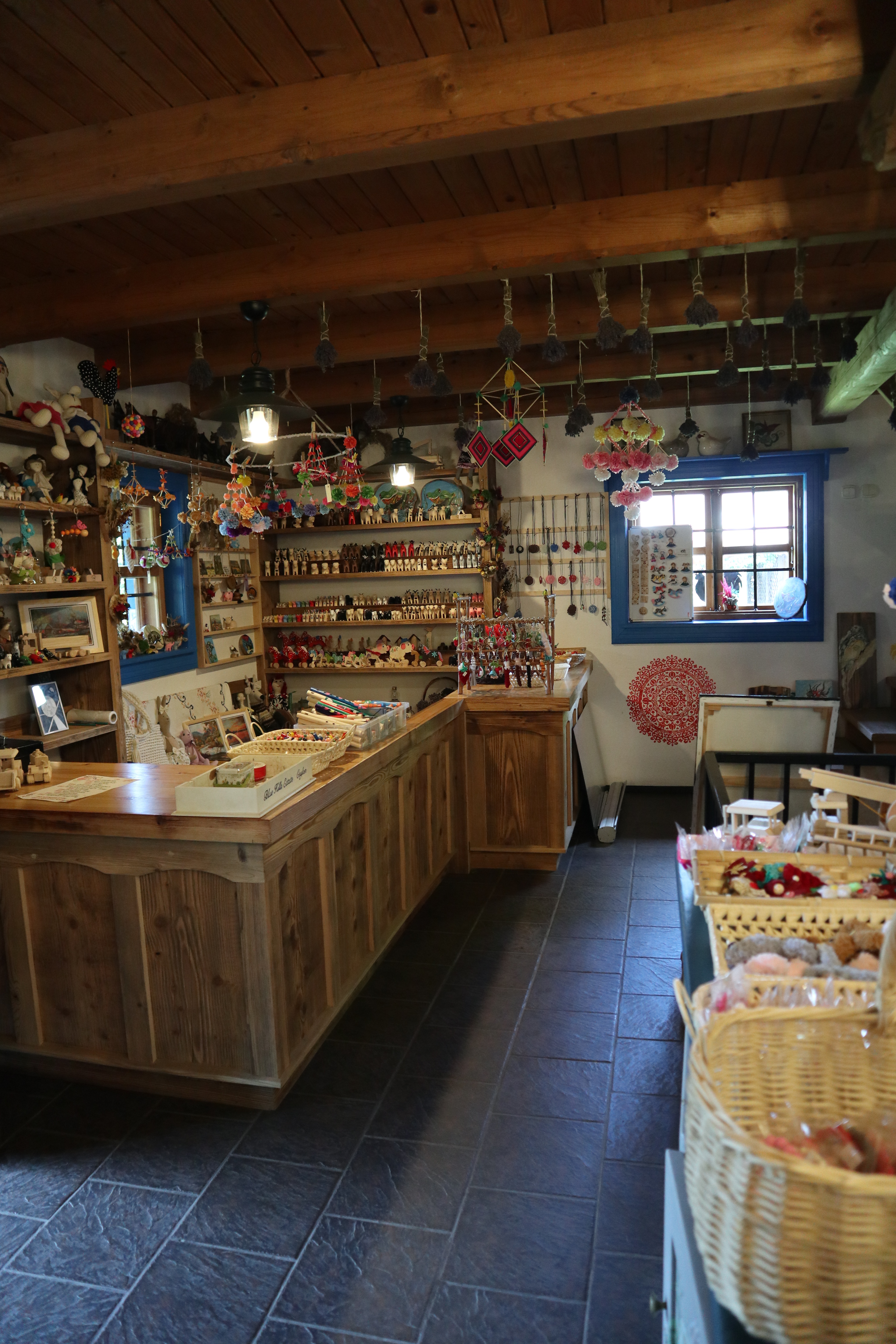 Skansen można bez zaglądania do wnętrz budynków można zwiedzić za darmo. Przy okazji ciesząc się pięknem otaczającego go ogrodu oraz… małej zagrody z królikami i kozami. W budynku głównym jest sklepik z pięknymi rękodziełami i kawiarenka, w której oprócz dobrej kawy możecie skosztować pysznych domowych ciast, które piecze pani Basia. Zdecydowanie warto! Jest pysznie i niedrogo. Można się tutaj naprawdę zrelaksować i odpocząć. Tym bardziej, że okolica jest malownicza. Nad kawiarenką jest tez sala ze starymi maszynami do szycia, strojami.