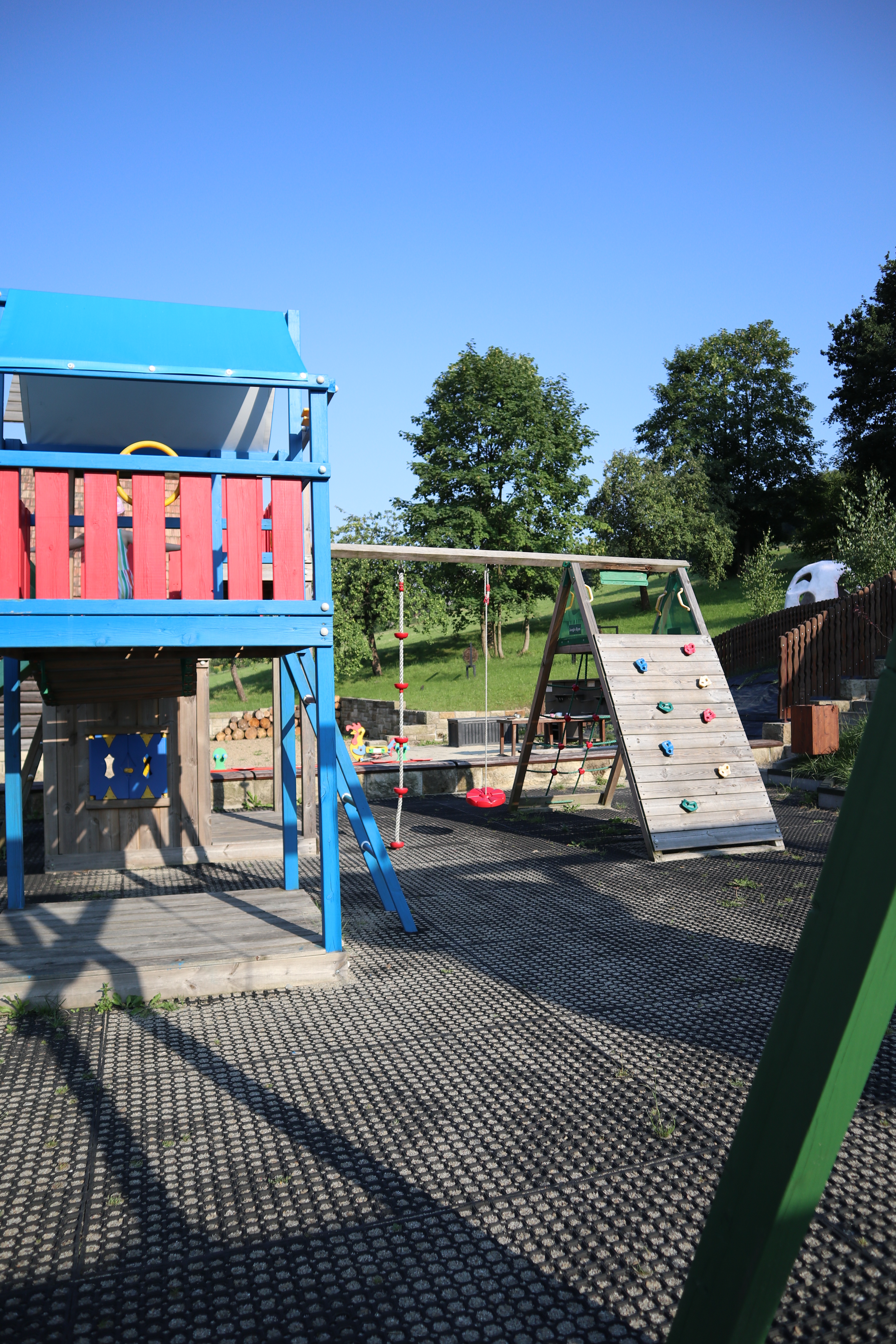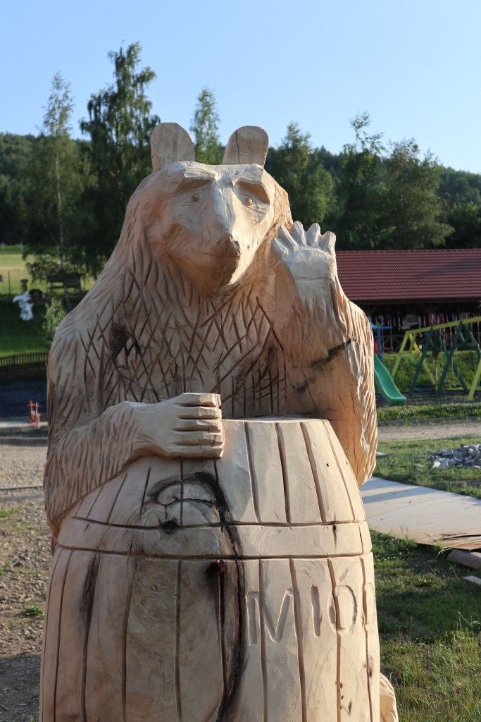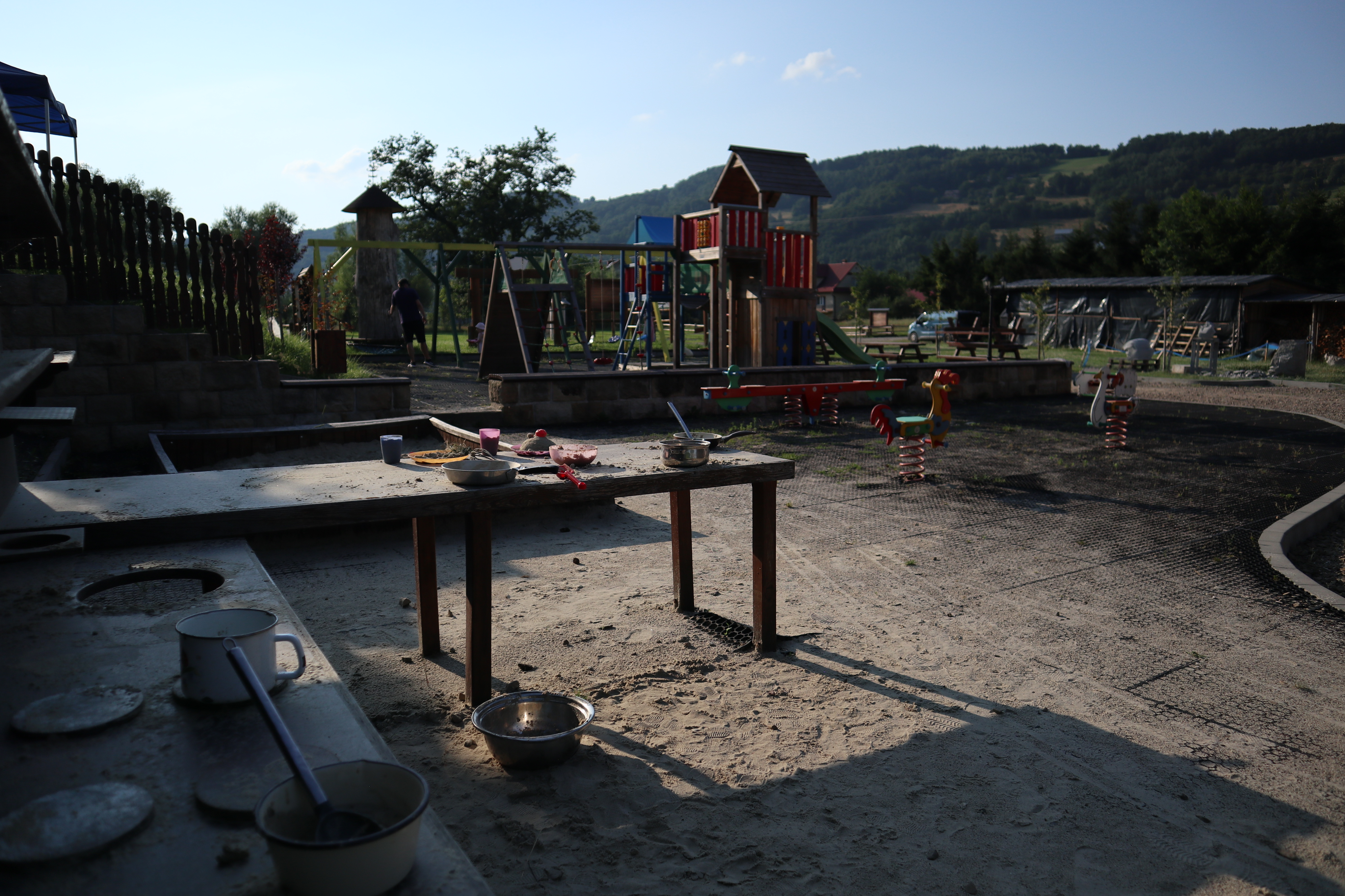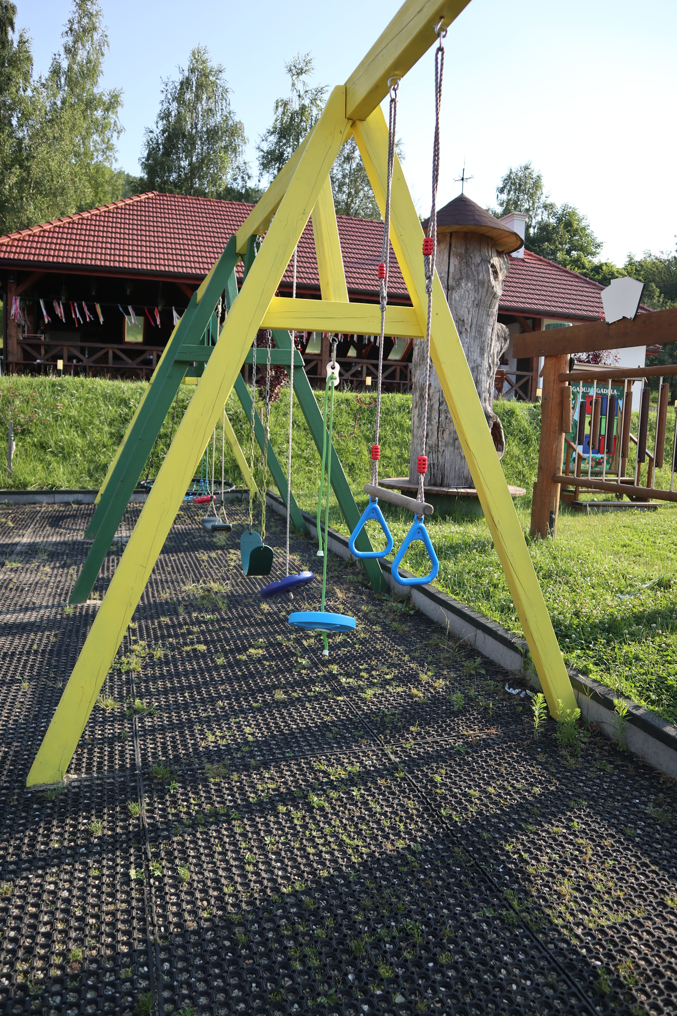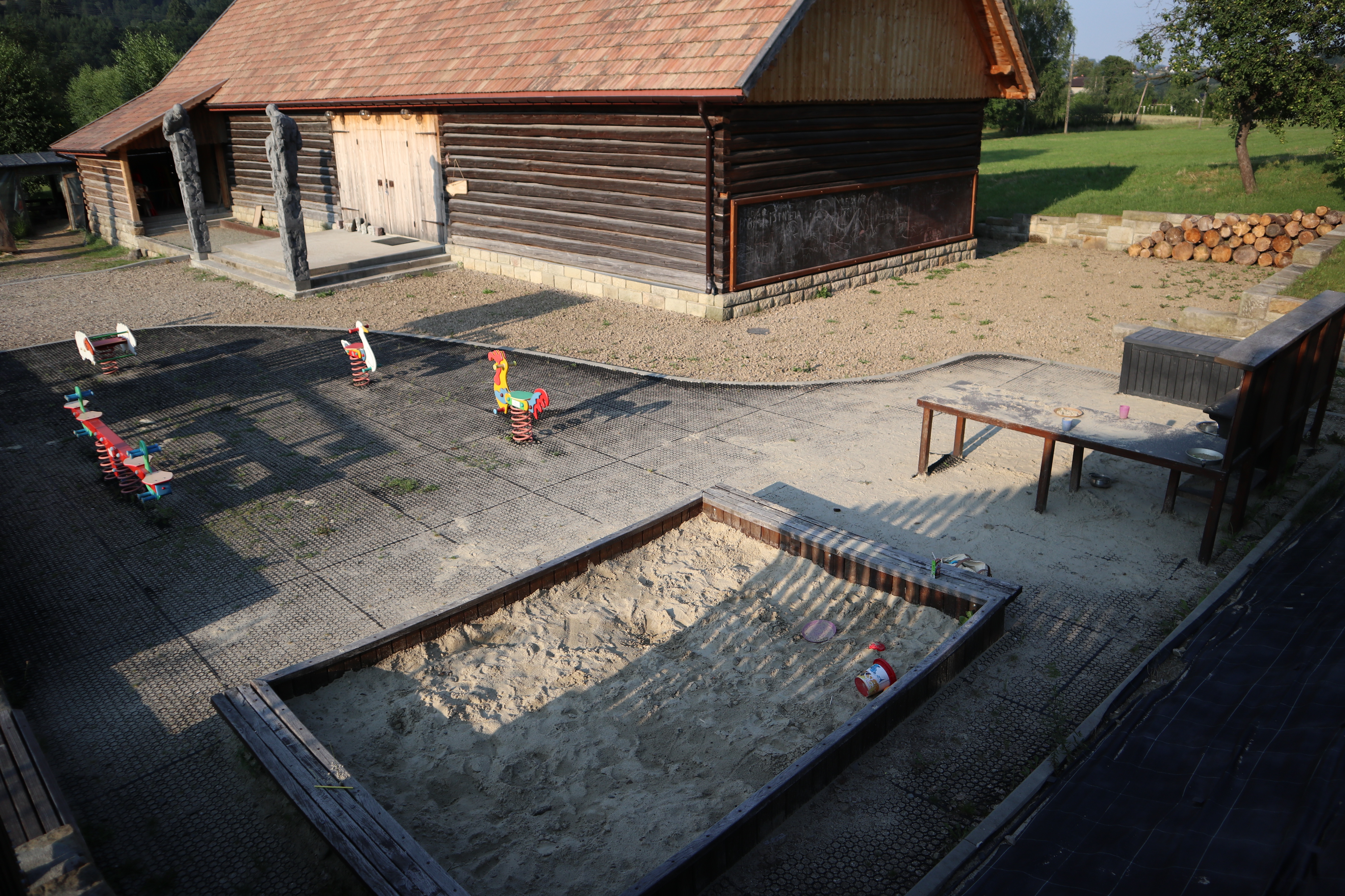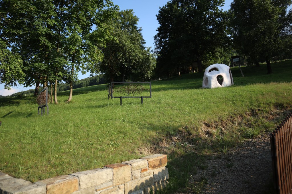 Nad placem zabaw jest ogromna wiata. Można w niej odpocząć. Odbywają się tutaj także okolicznościowe imprezy. Wszystko otacza ogród pełen rzeźb. A nad całością jest zwierzyniec z sarnami, kozami, kurami.