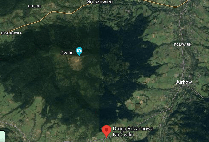 W nawigacji: najlepiej wpisać: Droga Różańcowa na Ćwilin. Dojedziecie do miejsca, gdzie jest nieco zniszczona tablica informacyjna o tej drodze i gdzie jest parking. Stąd drogą na której co jakiś czas pojawiają się kapliczki kierujecie się w stronę szczytu. Trasę pokonacie w 1-1,5 godziny może dwie jeśli idą z Wami małe dzieci, które dzielnie maszerują na własnych nogach. Podejścia nie są strome i idzie się bardzo przyjemnie w cieniu lasu.