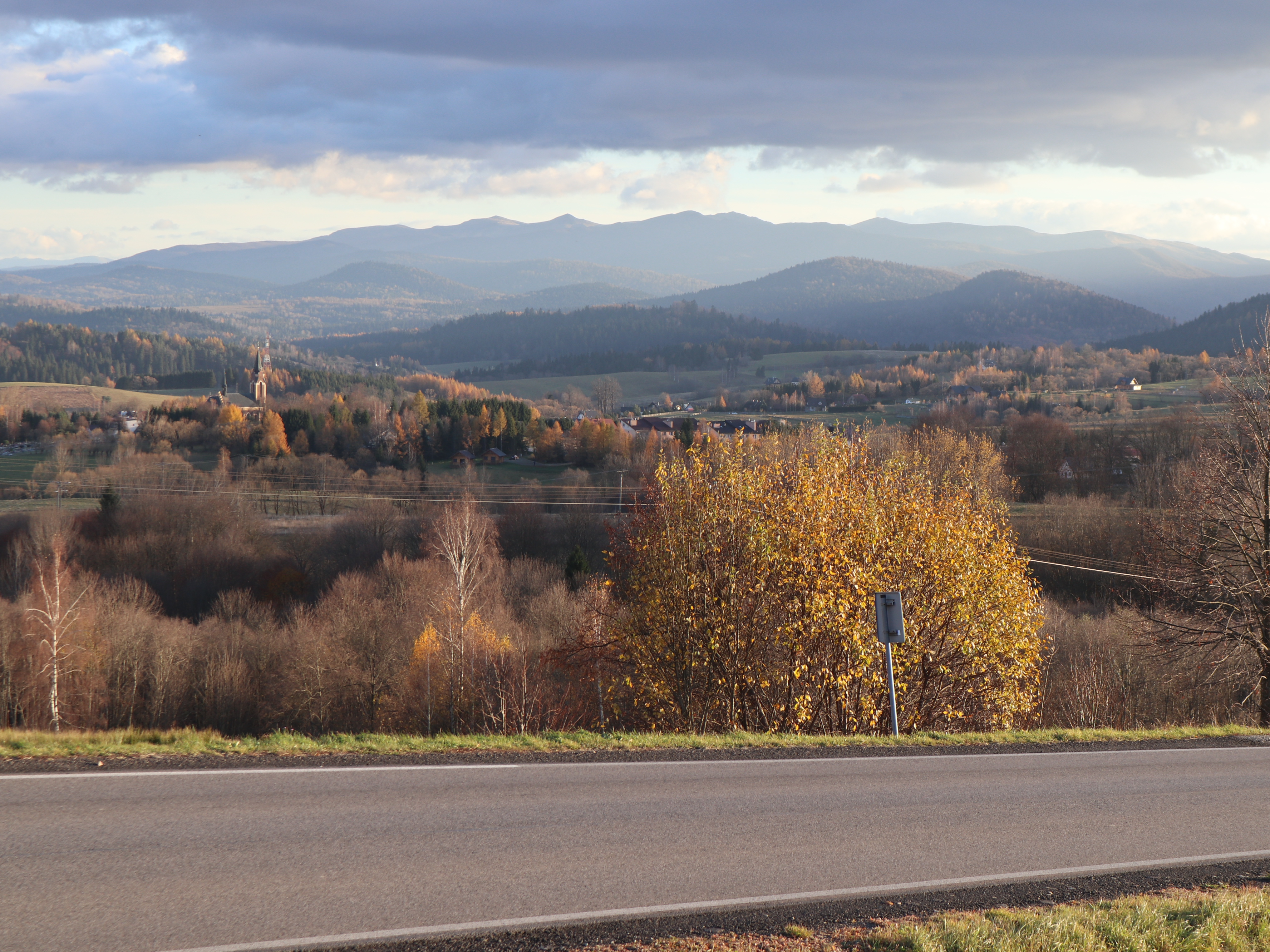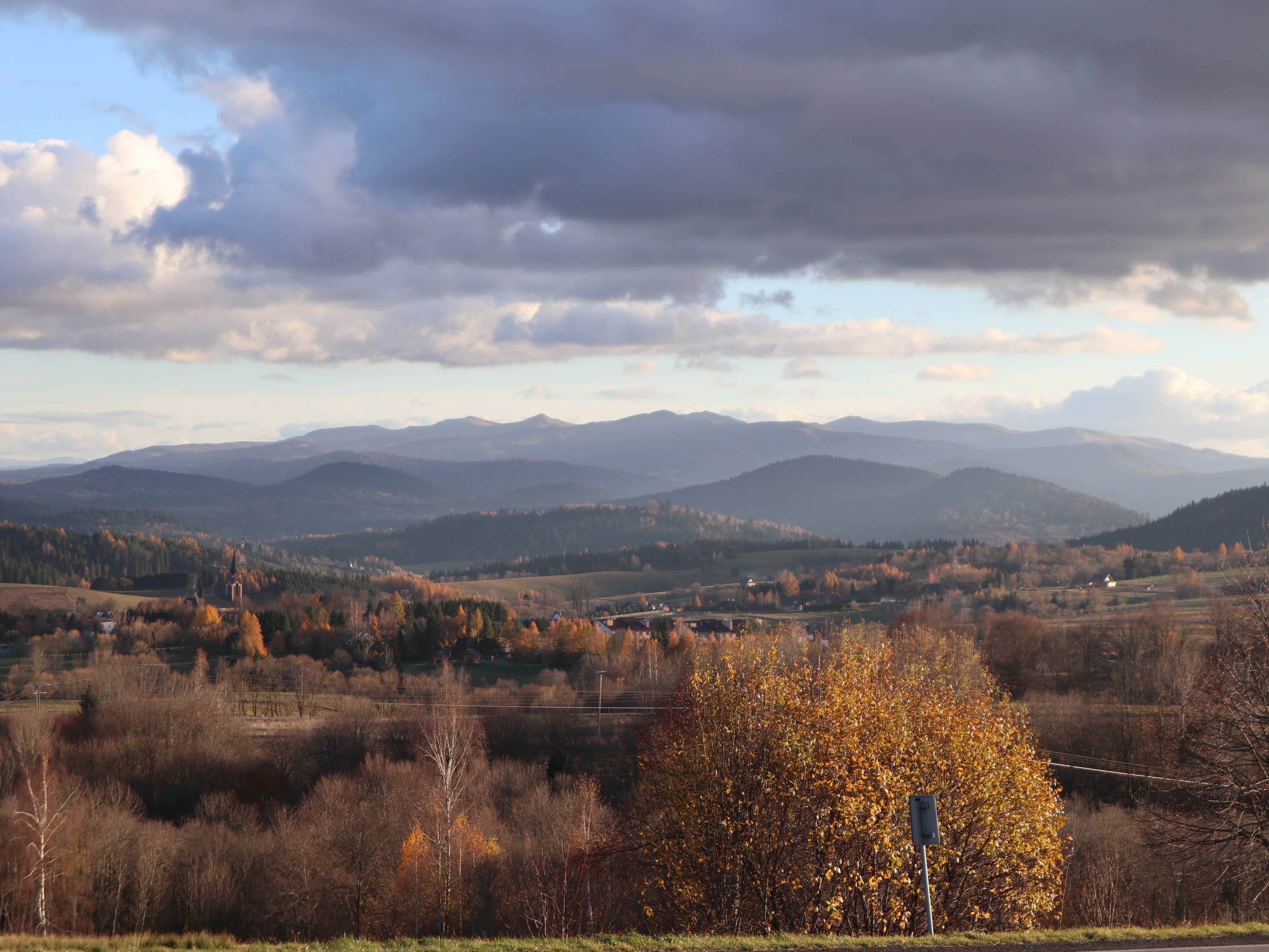 Jeśli w Bieszczadach jesteś samochodem i podróżujesz Wielką Pętlą Bieszczadzką, to nie możesz ominąć tego bajecznego widoku na Lutowiska na tle najwyższych bieszczadzkich szczytów. Wpisz w nawigacji: Punkt Widokowy w Parku Gwiezdnego Nieba Bieszczady. Trafisz w ten sposób na parking z świetną panoramą, ławeczkami do jej podziwiania, a nawet tablicą opisującą widoczne w oddali górskie szczyty.