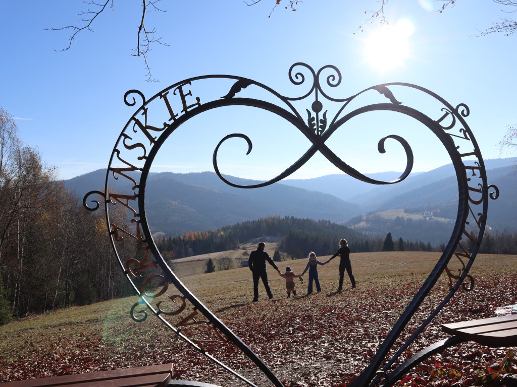Te tereny to pogranicze Beskid Wyspowego i Gorców. To tutaj za sprawą Zagórzańskich Dziedzin stanęło „monidło do zdjęć – inspirowane zagórzańską parzenicą, zaprojektowane przez naszą dziedzinną artystkę, Józefę Potaczek, a wykonane przez zagórzańskiego mistrza kowalstwa artystycznego – Jakuba Kotarbę„. Możecie sobie tutaj odpocząć i zrobić piękne zdjęcie z widokiem na Gorce. To teren prywatny i jest monitorowany, zatem apel by po pikniku pamiętać o zostawieniu terenu w takim stanie jakim go zastaliście ( zresztą jak zawsze – swoje śmieci zabierz ze sobą)!