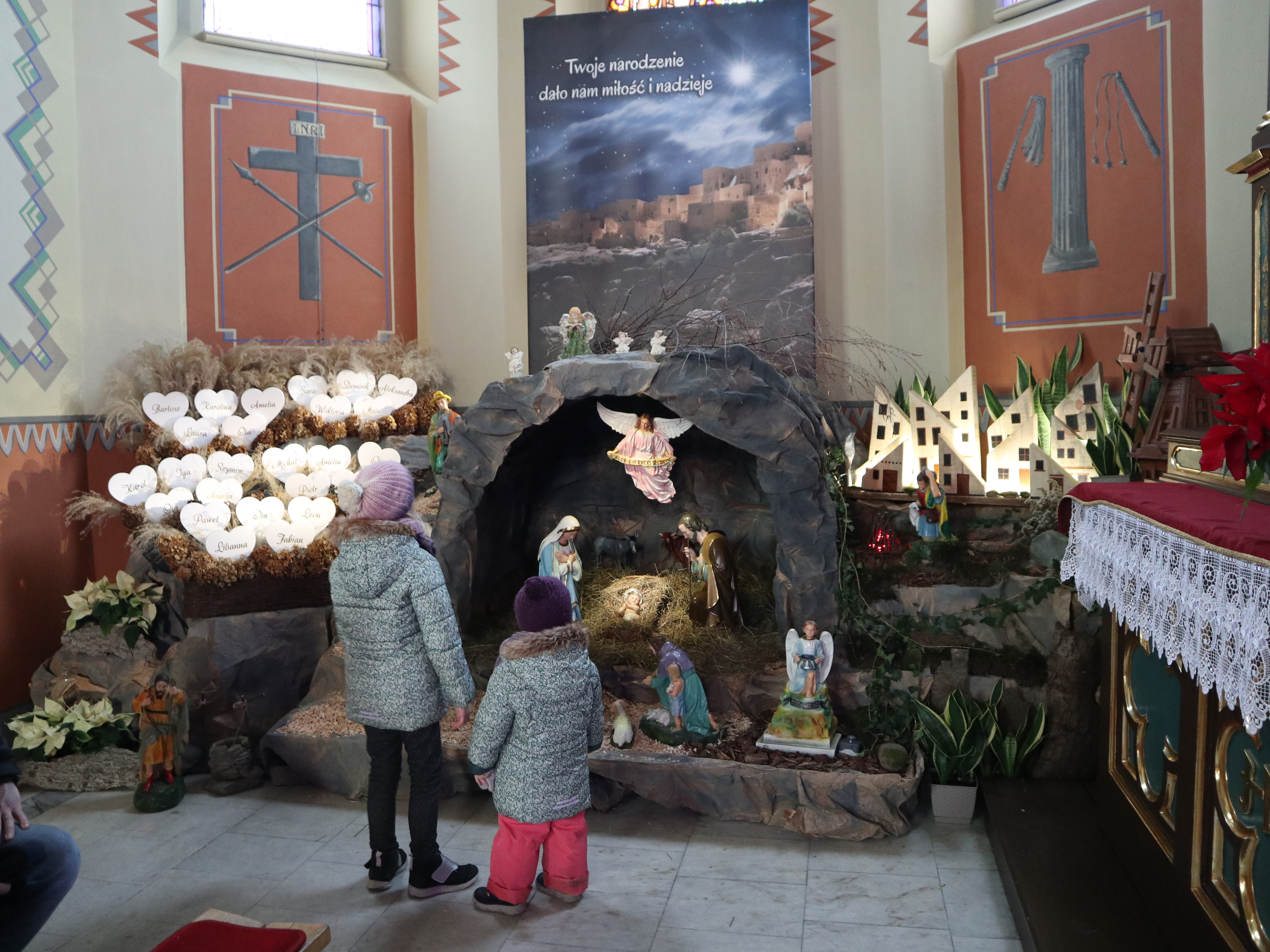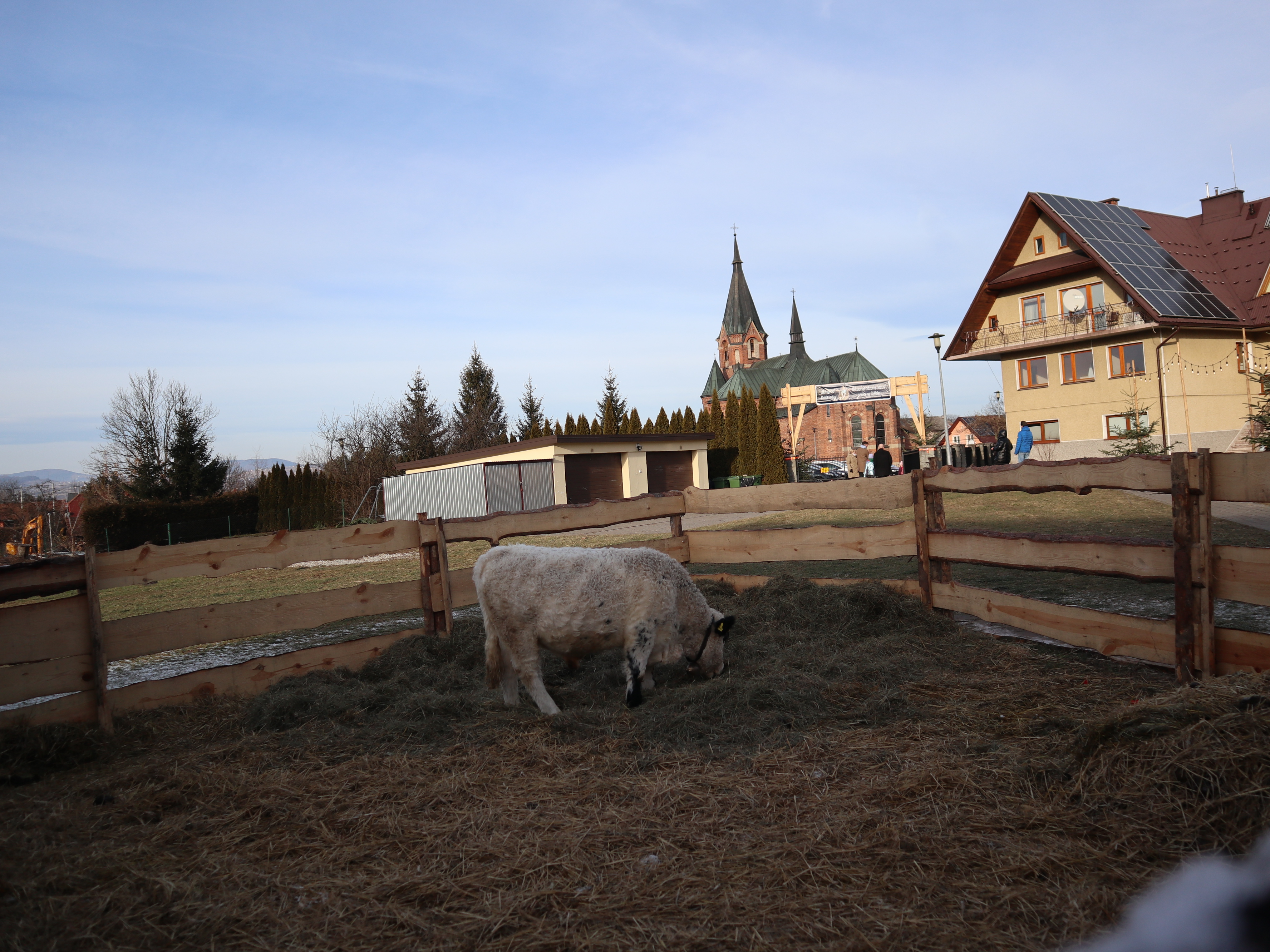 To nie jest typowa żywa szopka. To rzeczywiście maleńka wioska. Jest Zagroda, w której centralne miejsce zajmują figury świętej rodziny. Wokół żłobka z Jezusem są zagrody z: papugami, gąskami, indykami, gołębiami, królikami, pawiami, owcami, osiołkiem, wielbłądem (tak! to zdecydowanie największa atrakcja tej szopki, przynajmniej dla dzieci). Na zewnątrz są konie, kucyki, kozy, byk, owce, barany.