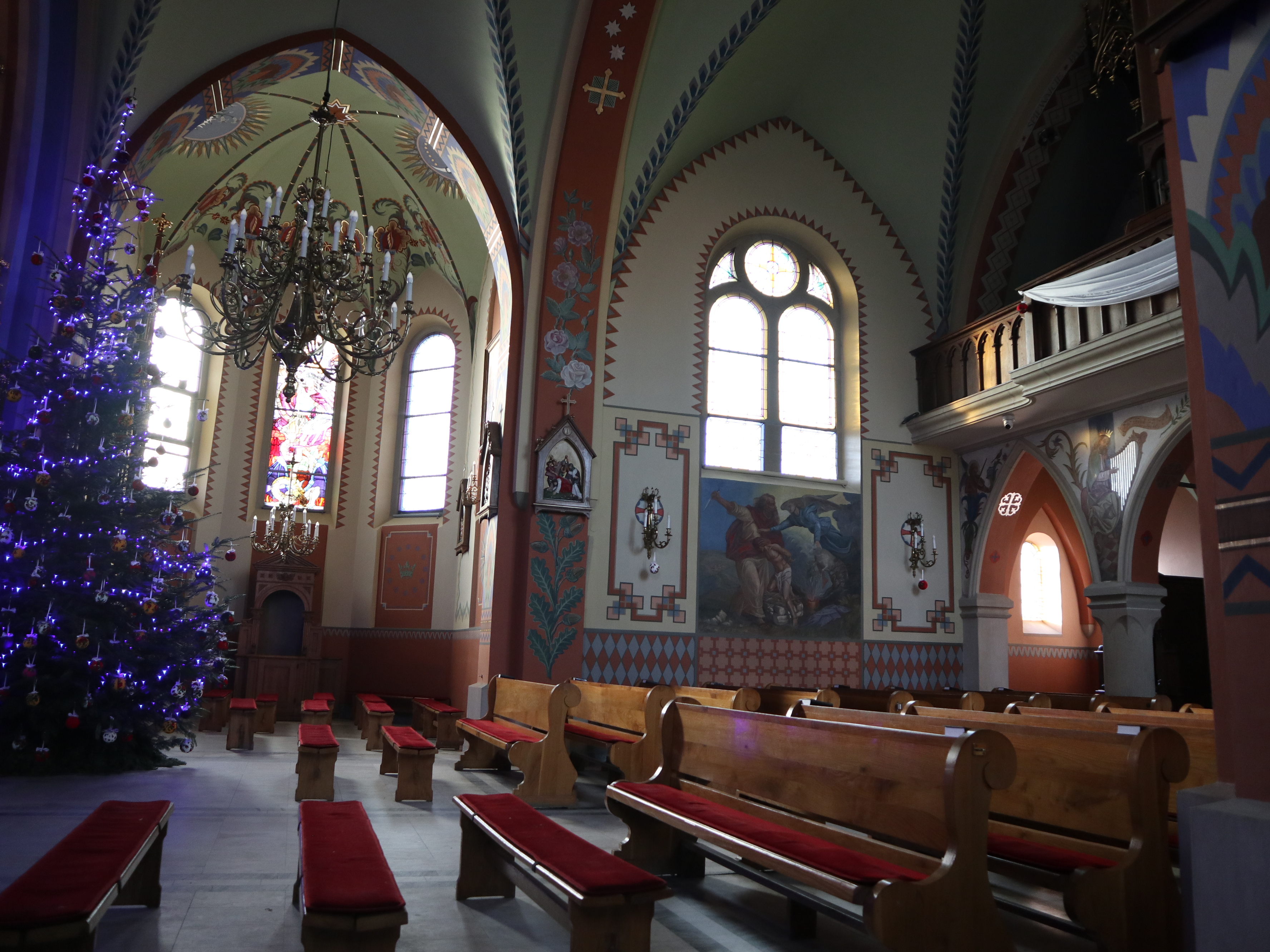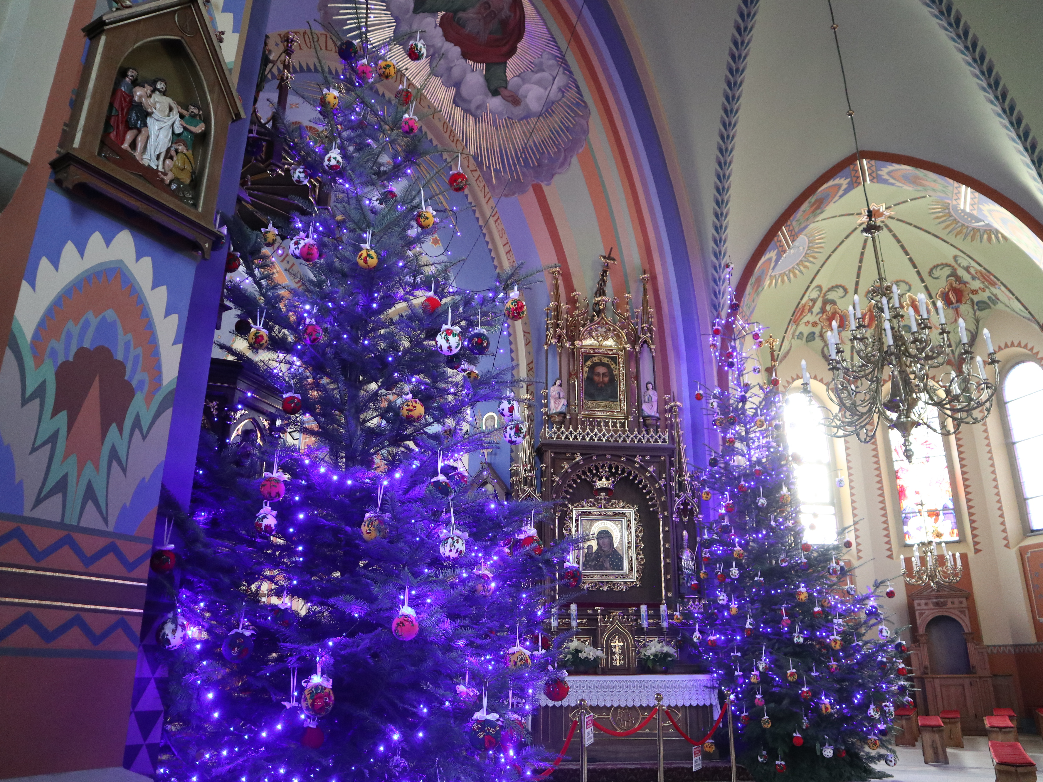 Wnętrze zdobią piękne freski, a także obraz Matki Boskiej Biegonickiej. W lewej nawie, w okresie bożonarodzeniowym znajdziecie też bardzo ładną szopkę.