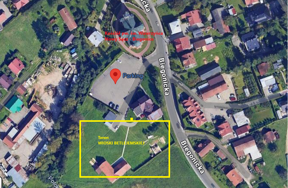 Do biegonickiej wioski betlejemskiej bardzo łatwo trafić. Wystarczy nawigację ustawić na parking przy parafii pw. św. Wawrzyńca (Biegonicka 8, 33-300 Nowy Sącz). Parking jest bezpłatny i znajduje się dokładnie pomiędzy kościołem i szopką. Jeśli się tutaj wybieracie warto wcześniej zajrzeć na stronę parafii i sprawdzić rozkład mszy (o tutaj) , żeby trafić na jak najmniejszy ruch. My byliśmy tutaj w dniu świątecznym i wybraliśmy się około południa gdy było po mszy o 10:30 a jeszcze sporo czasu zostało do mszy o 15:30. W szopce był mniejszy ruch, a na parkingu sporo wolnych miejsc.
