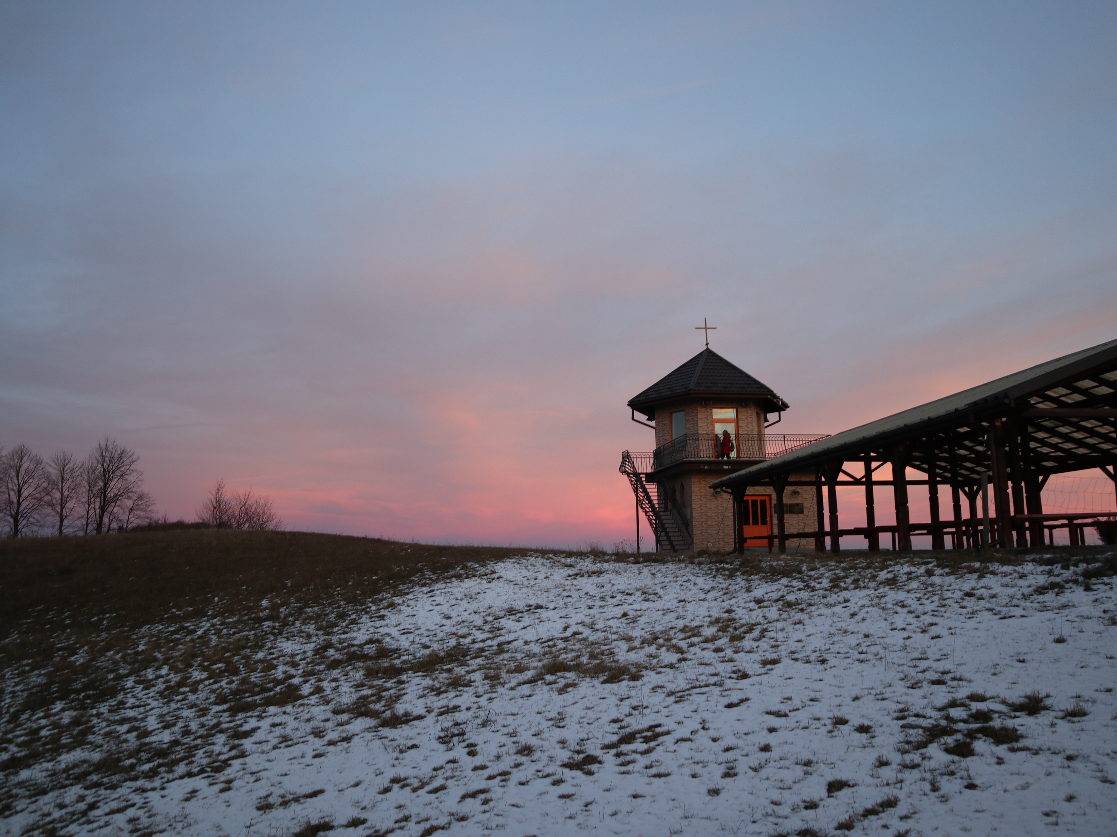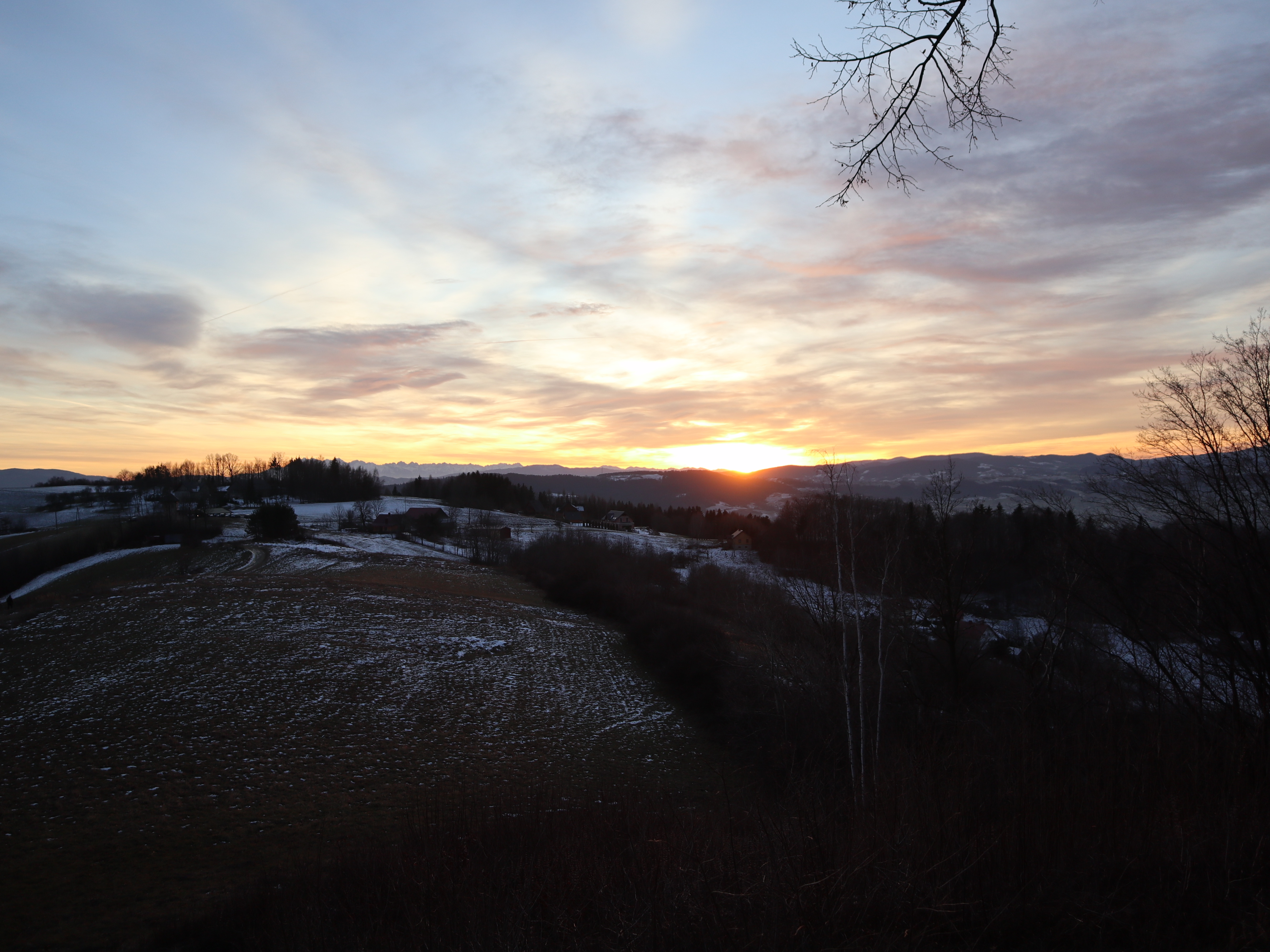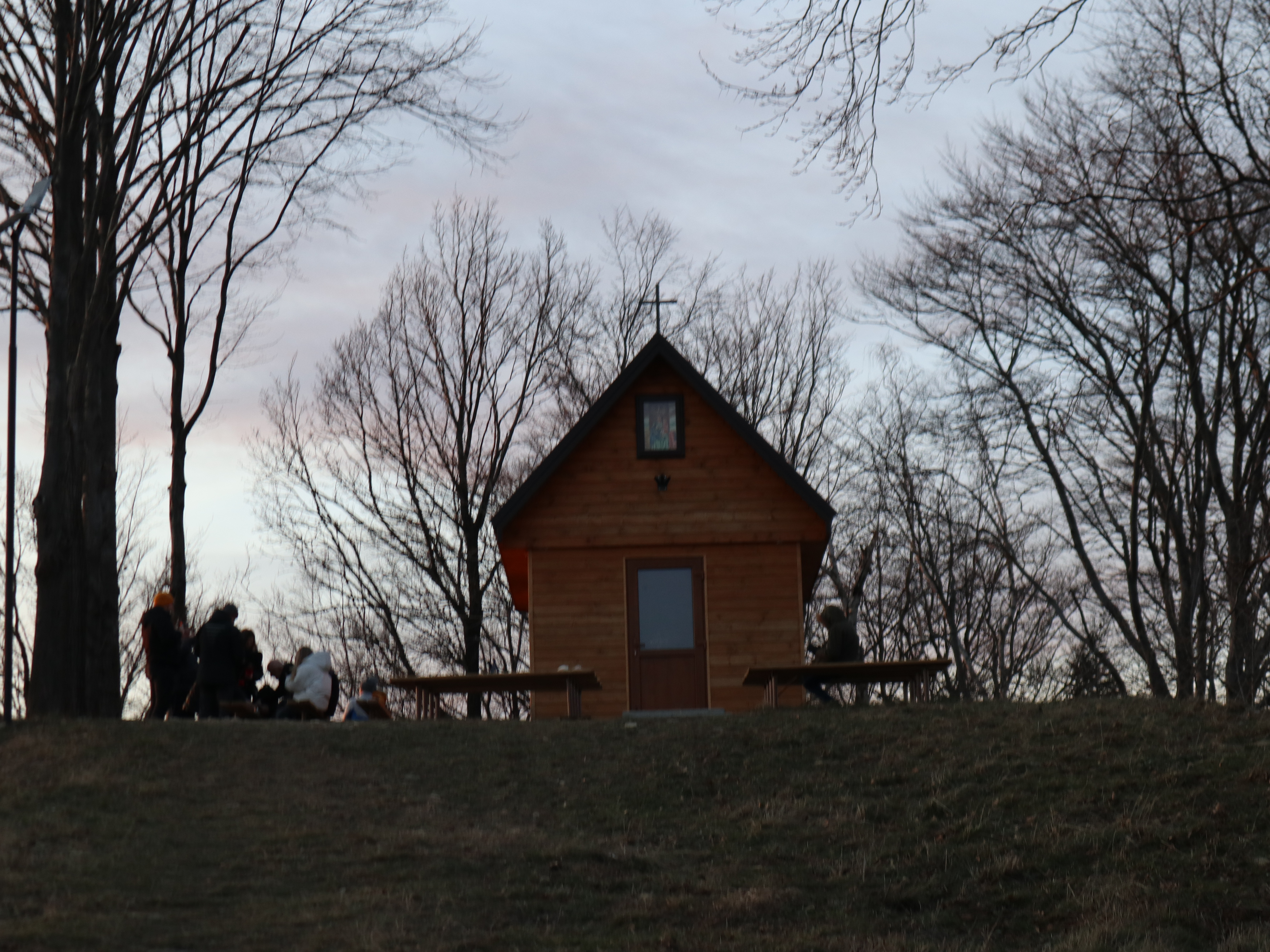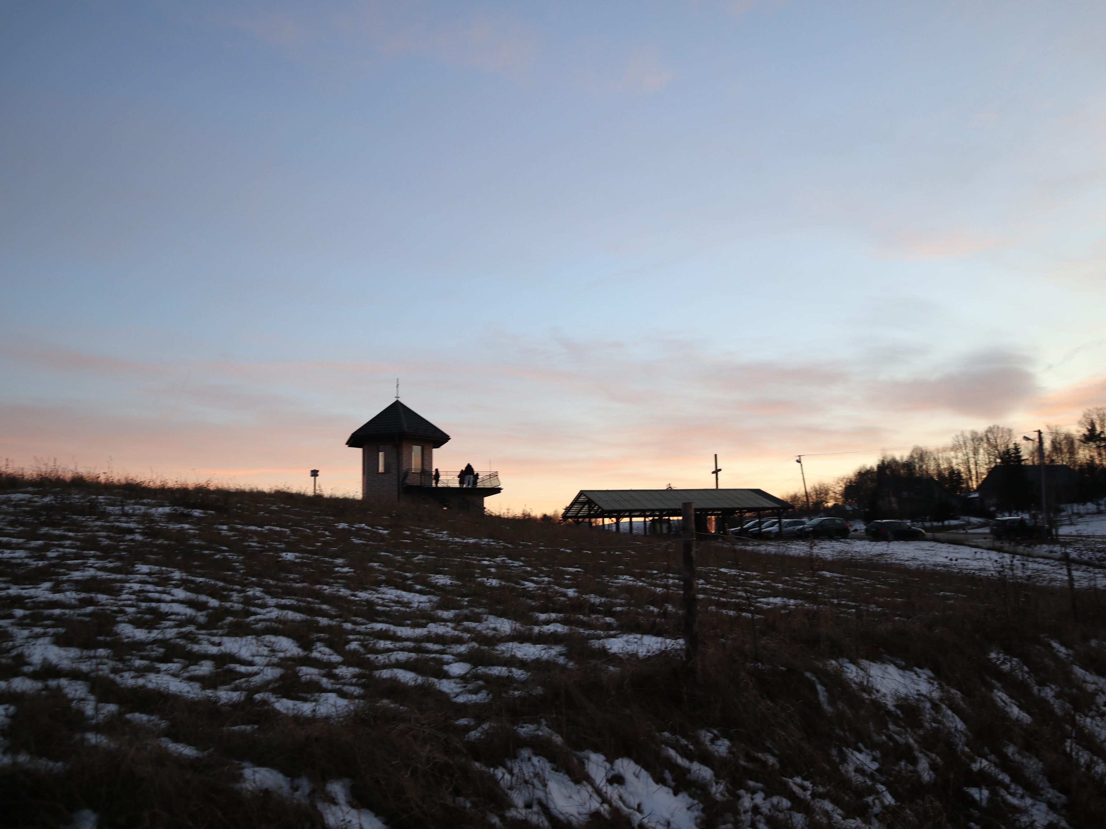 W drodze powrotnej warto odbić na małe wzniesienie z kaplicą pw. Matki Bożej Królowej Polski. Jeśli tak jak my traficie na piękny zachód słońca to podziwianie Tatr, będzie jeszcze przyjemniejsze.