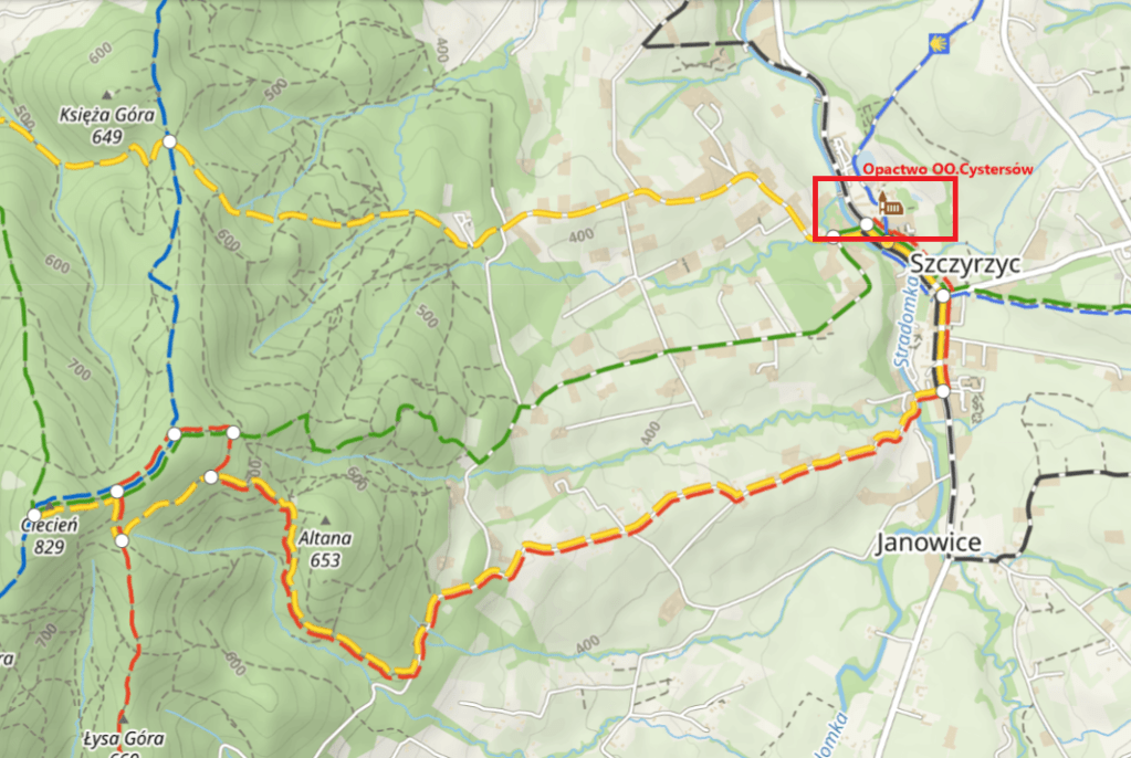 Szczyrzyc to miejscowość w gminie Jodłownik, w powiecie limanowskim. Leży na pograniczu Beskidu Wyspowego i Pogórza Wiśnickiego. Leży w dolinie rzeki Stradomki. Z Krakowa samochodem dojedziecie tutaj w około godzinę. Okolica zachwyca widokami, nie brakuje tutaj ciekawych szlaków turystycznych (więcej poniżej). Zaparkować możecie na parkingu obok klasztoru (49.784816, 20.186866) i cieszyć się ciekawą wycieczką.