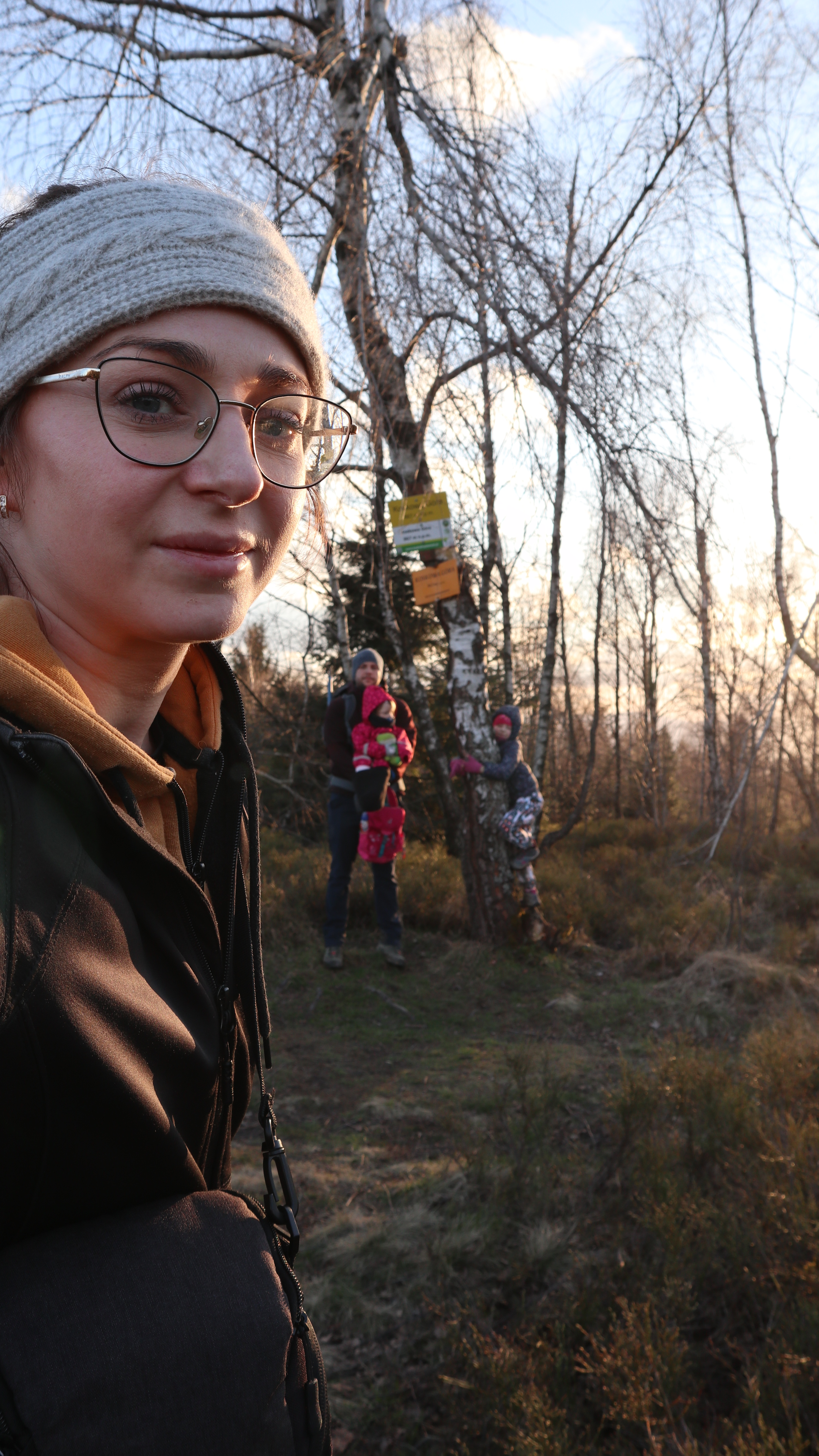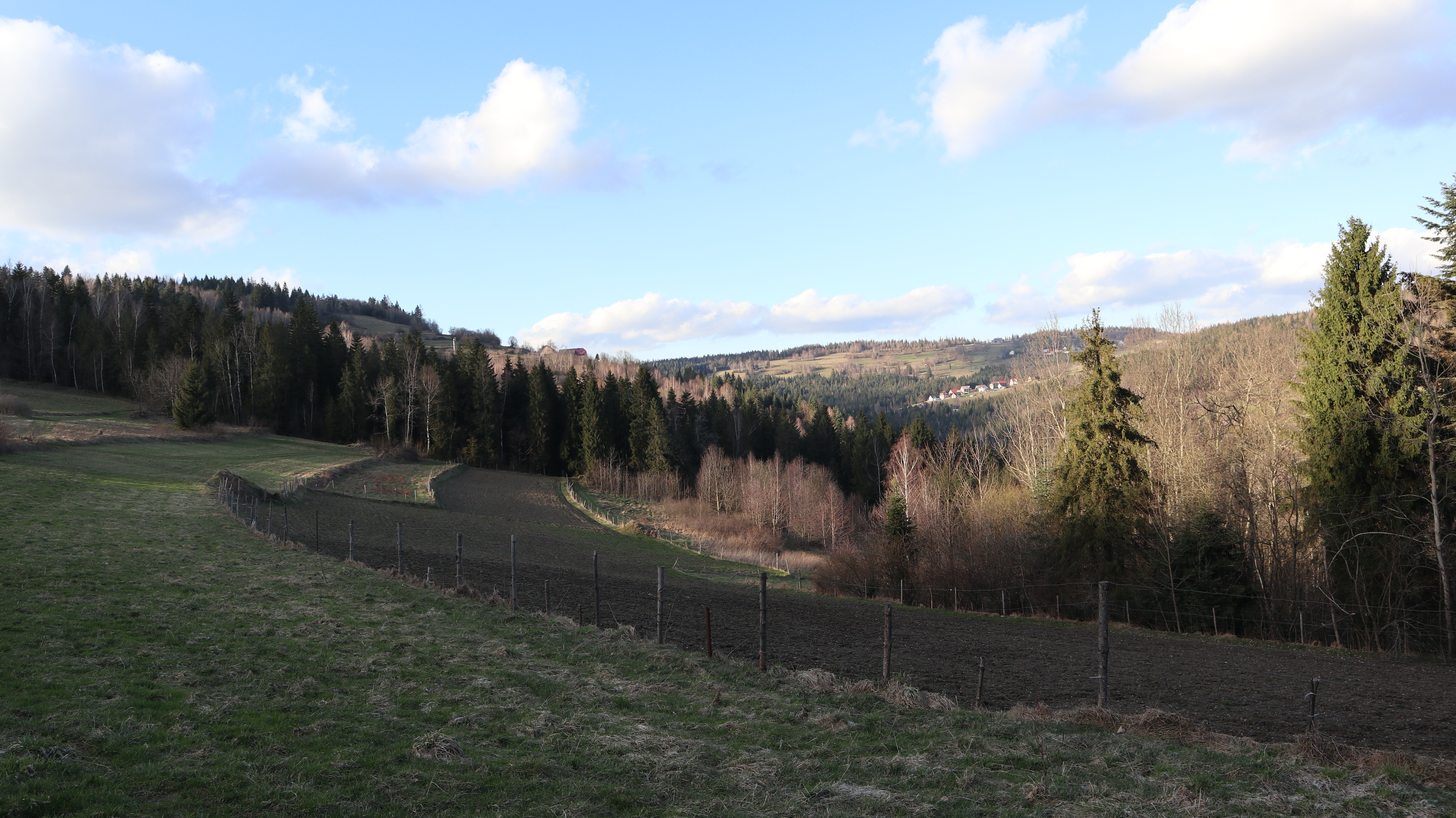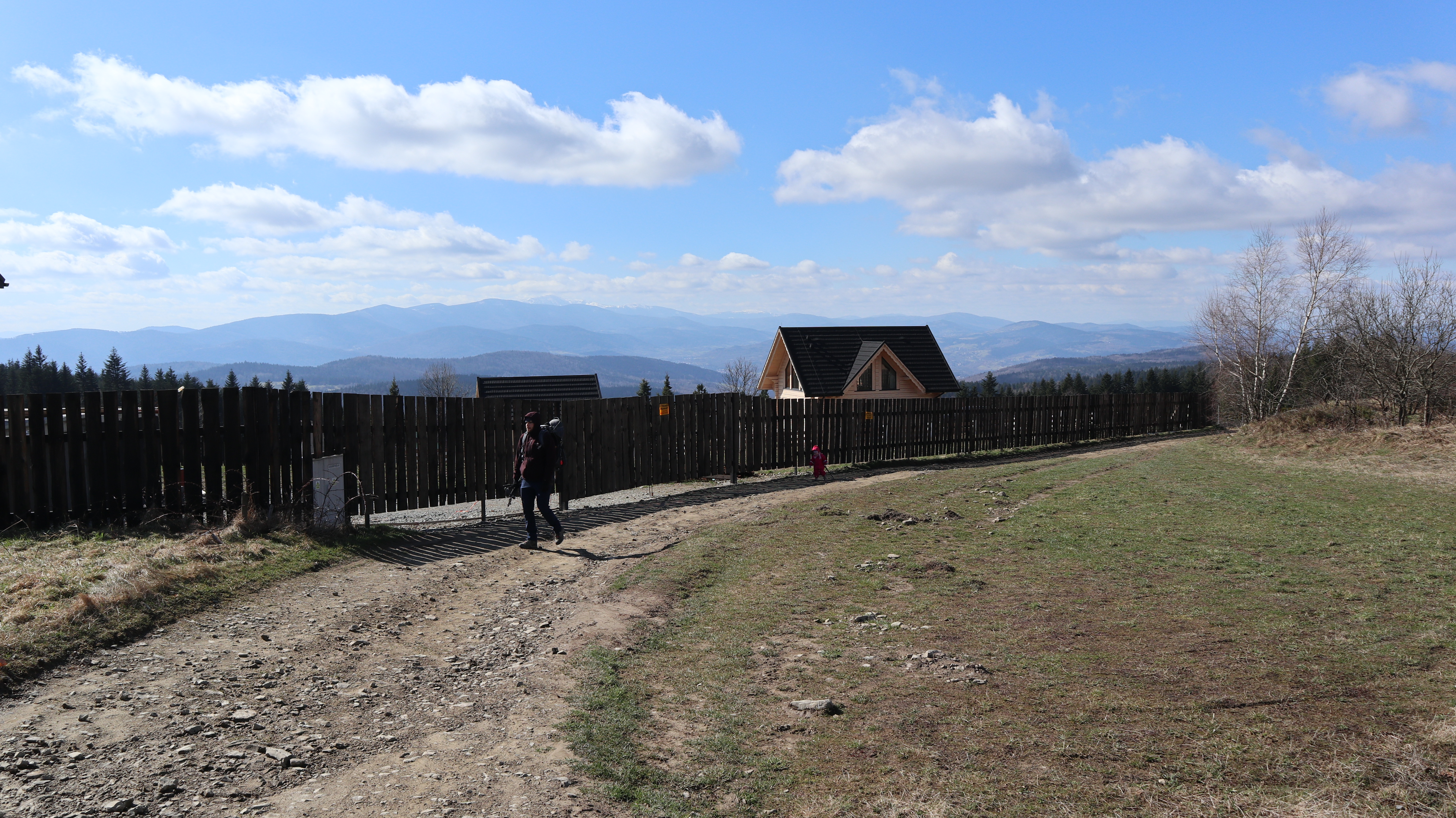 Ze względu na porę roku, wczesną wiosną dni są jeszcze krótkie, chcieliśmy przez tę najpogodniejszą cześć dnia spacerować po grzbiecie. Wybraliśmy więc trasę przez Parszywkę i Wrzosowy Dwór, gdzie zjedliśmy obiad schodziliśmy do centrum wsi. Ten najbardziej stromy kawałek, na szczęście nie za długi, pokonywaliśmy podczas powrotu do domku.
