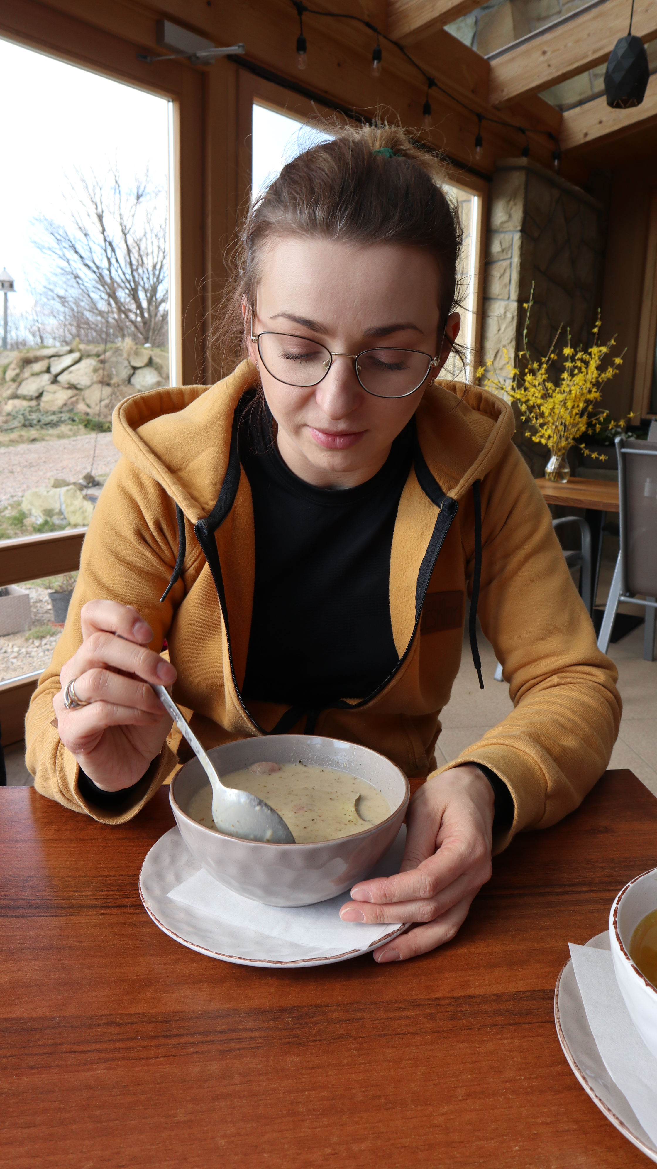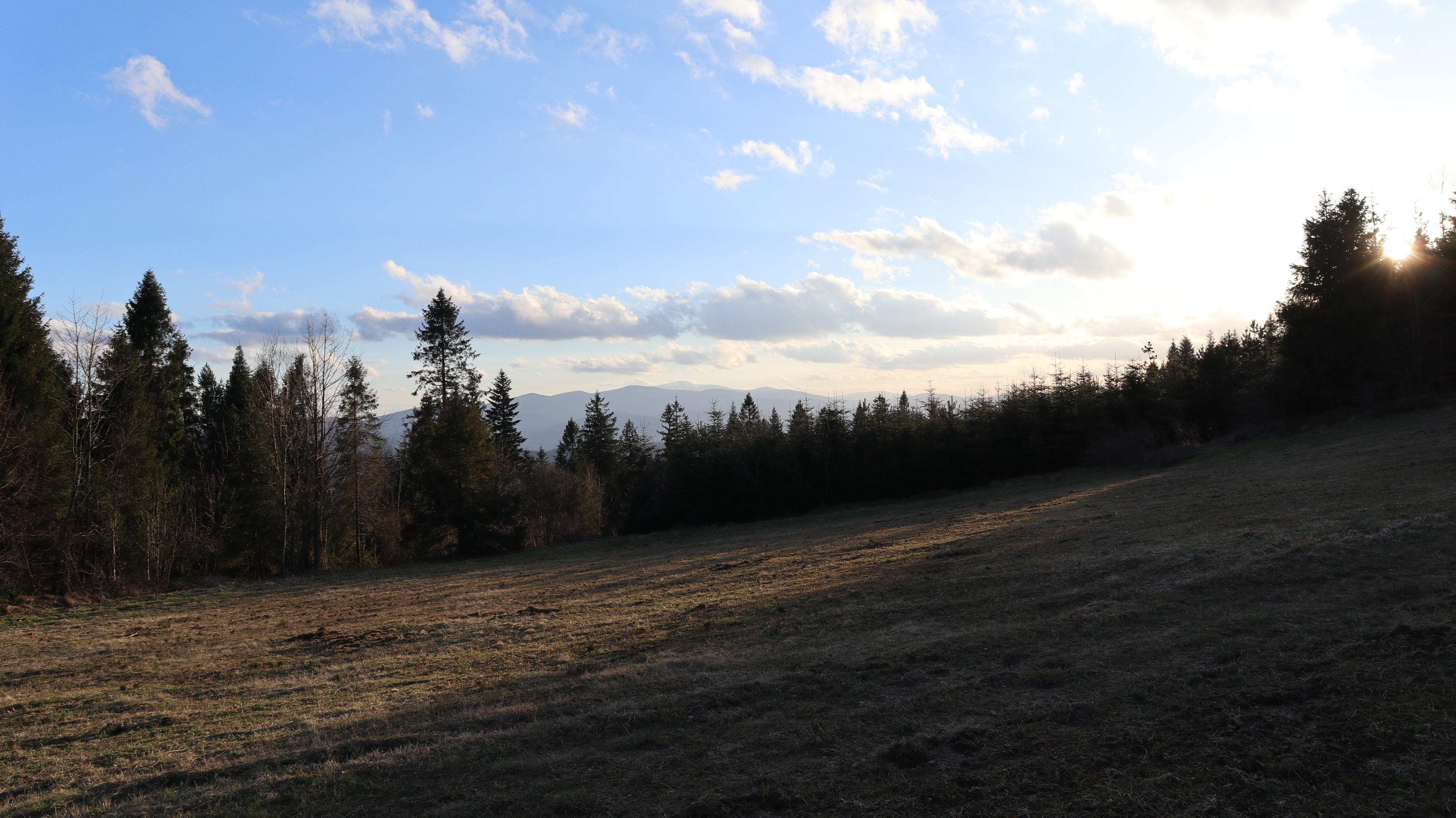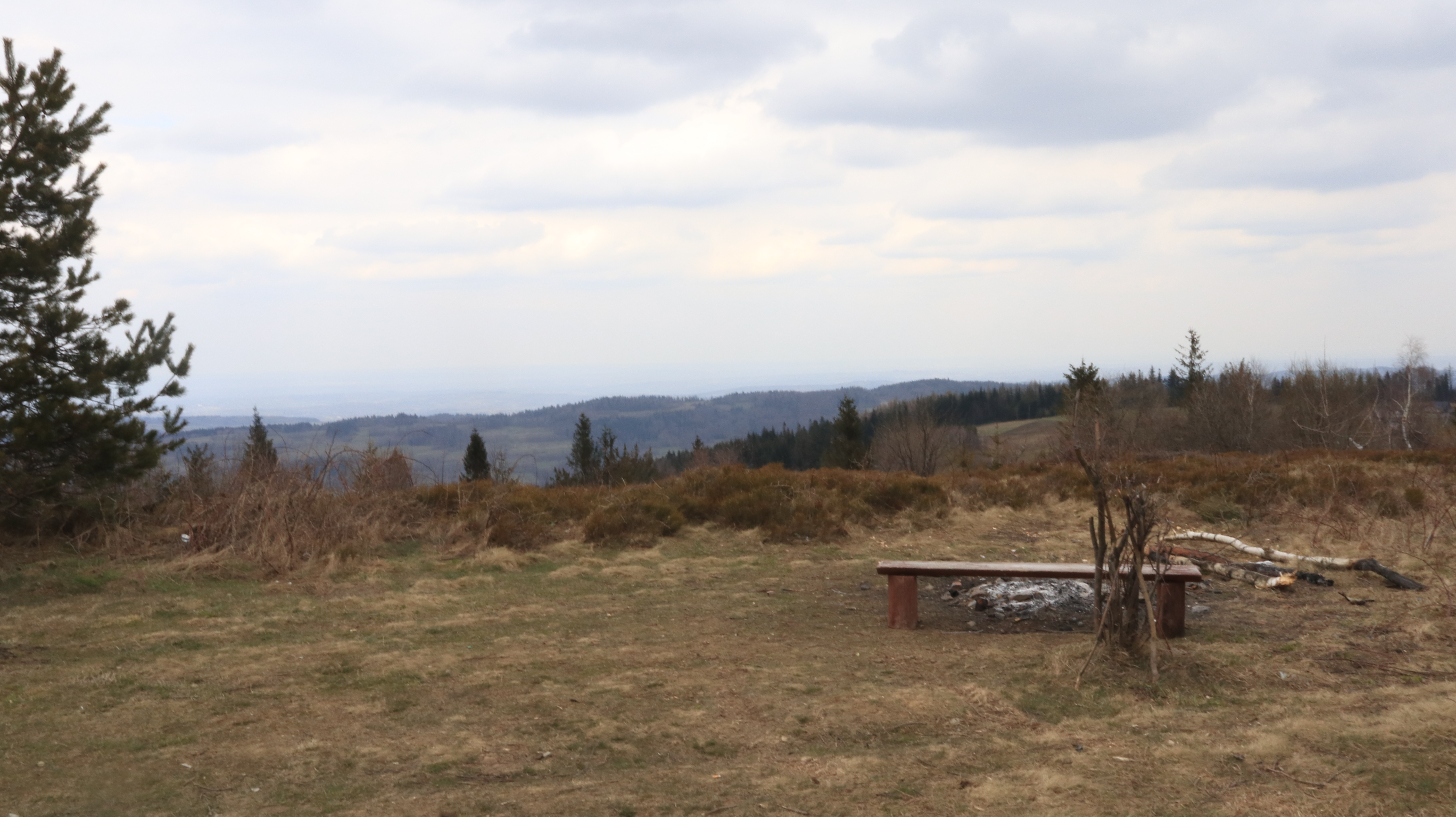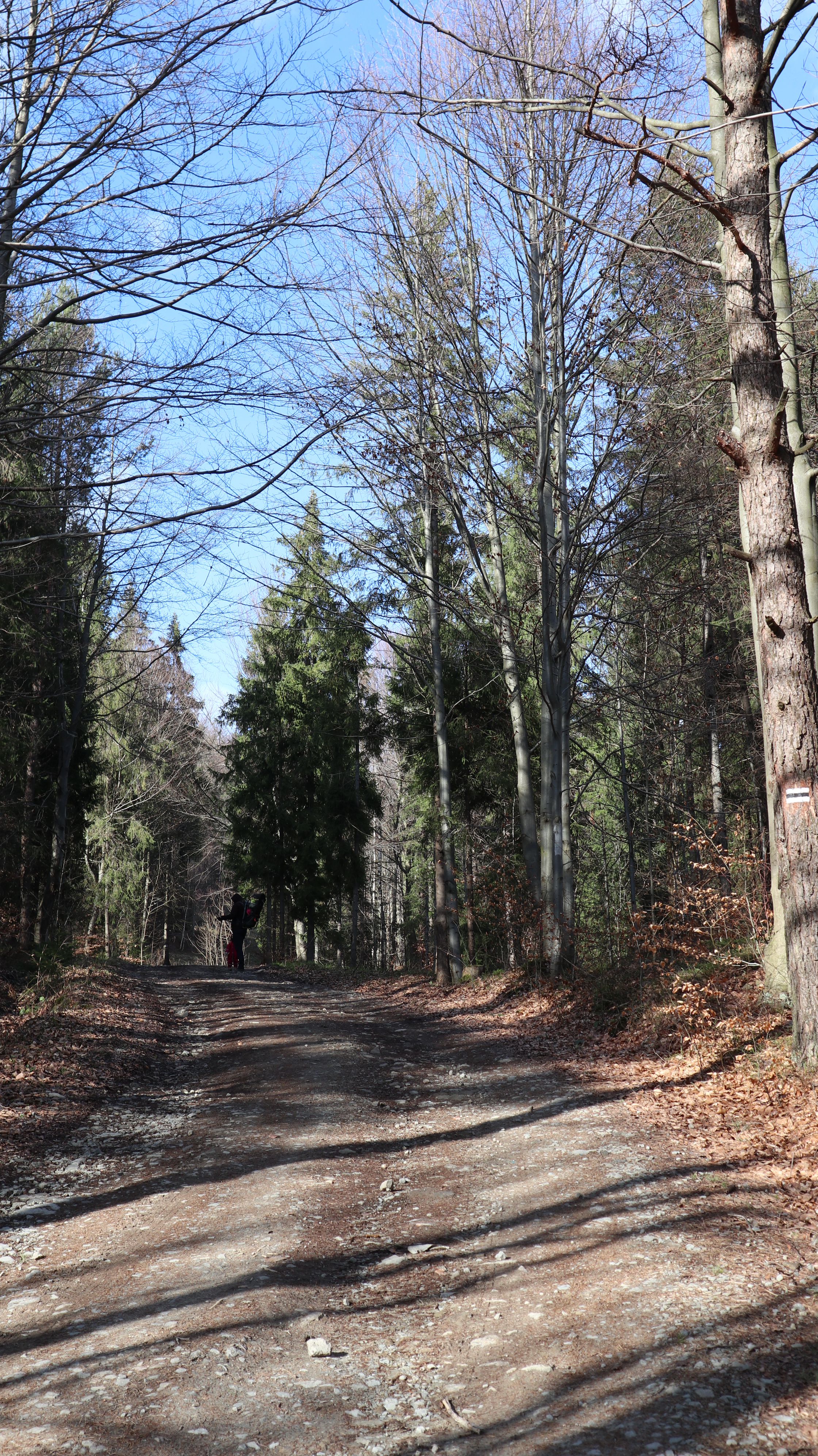 Ze względu na porę roku, wczesną wiosną dni są jeszcze krótkie, chcieliśmy przez tę najpogodniejszą cześć dnia spacerować po grzbiecie. Wybraliśmy więc trasę przez Parszywkę i Wrzosowy Dwór, gdzie zjedliśmy obiad schodziliśmy do centrum wsi. Ten najbardziej stromy kawałek, na szczęście nie za długi, pokonywaliśmy podczas powrotu do domku.