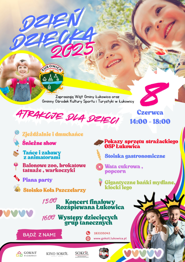 Gminny Dzień Dziecka to święto artystycznej energii! W programie znajdą się koncert laureatów konkursu „Rozśpiewana Łukowica”, gra terenowa „Łowcy skarbów”, dmuchańce, pyszne przekąski i występy lokalnych grup tanecznych. Idealna okazja na rodzinne popołudnie pełne muzyki i śmiechu.
