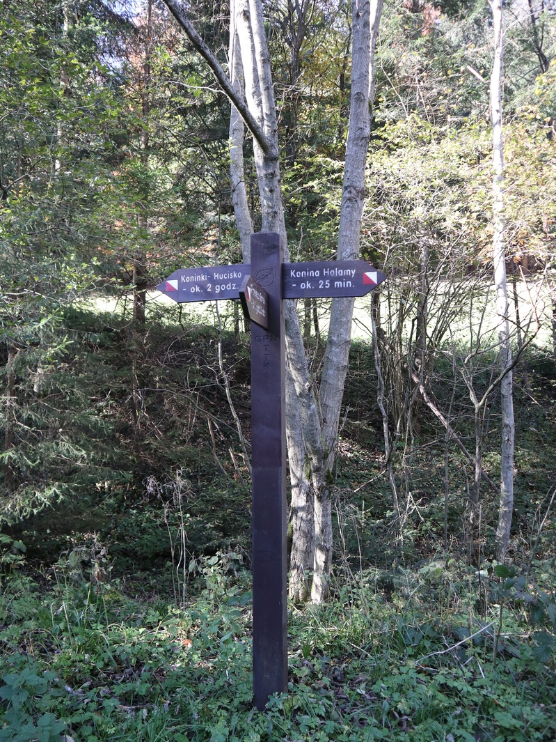 Naszą przygodę zaczęliśmy z dziećmi przy niewielkim, darmowym parkingu na Polanie Potasznia w Koninie. To świetna alternatywa dla zatłoczonych punktów startowych w Gorcach. Już od samego początku czuć było, że to będzie dzień z dala od hałasu i pośpiechu – tylko szum drzew i śmiech najmłodszych.