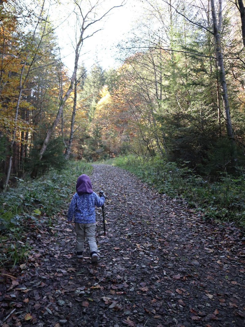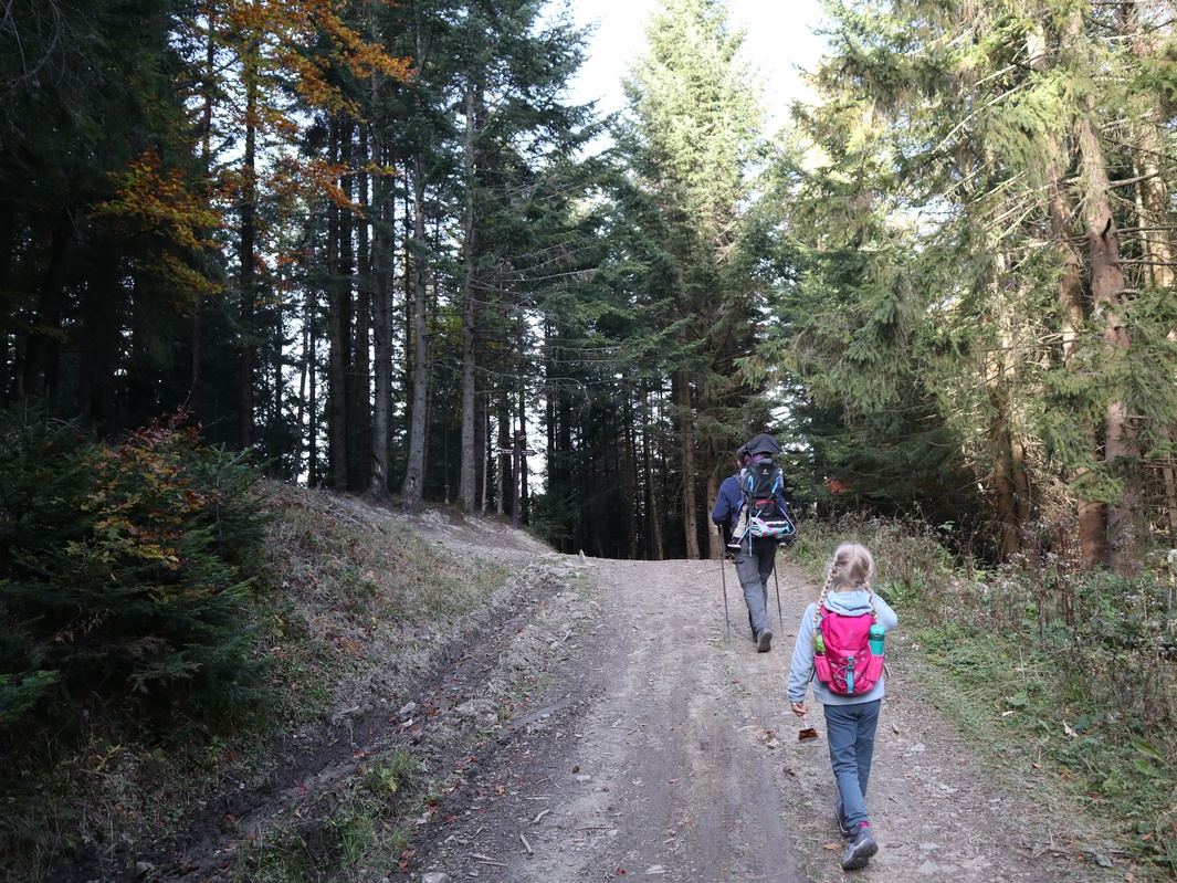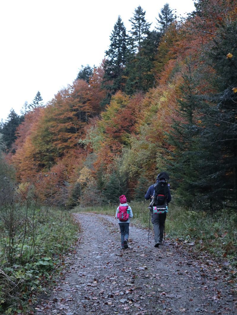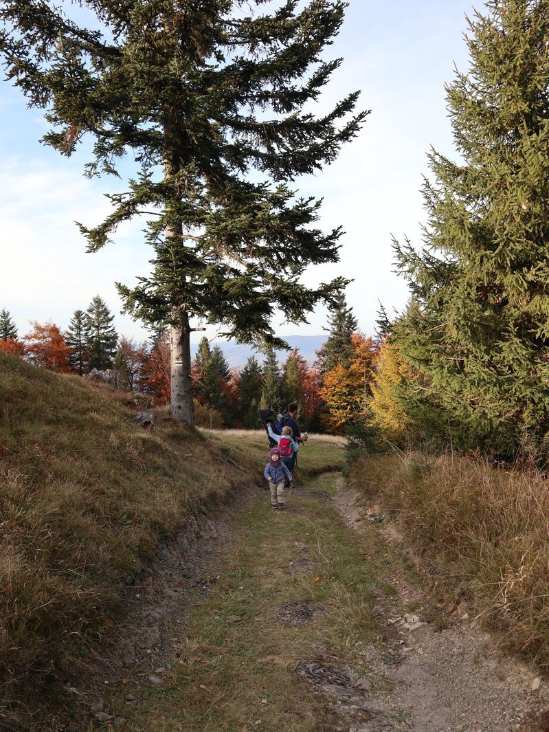 Trasa, którą pokonaliśmy liczyła ok 10 km, a podejście nie było strome, więc to był bardzo przyjemny spacer i nie odczuliśmy tego dystansu. Szliśmy spokojnym tempem – z przerwami na przekąski, zabawy i rozmowy przy tablicach edukacyjnych. Szlak bardzo łagodnie pnie się w górę, dzięki czemu dzieci nie męczą się zbyt szybko, a rodzice mogą skupić się na chłonięciu lasu i… świętym spokoju.