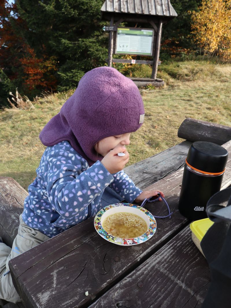 Na obiad – klasyka: rosół w termosie i kanapki. Smakował lepiej niż w niejednej restauracji, bo z widokiem, który koi duszę.