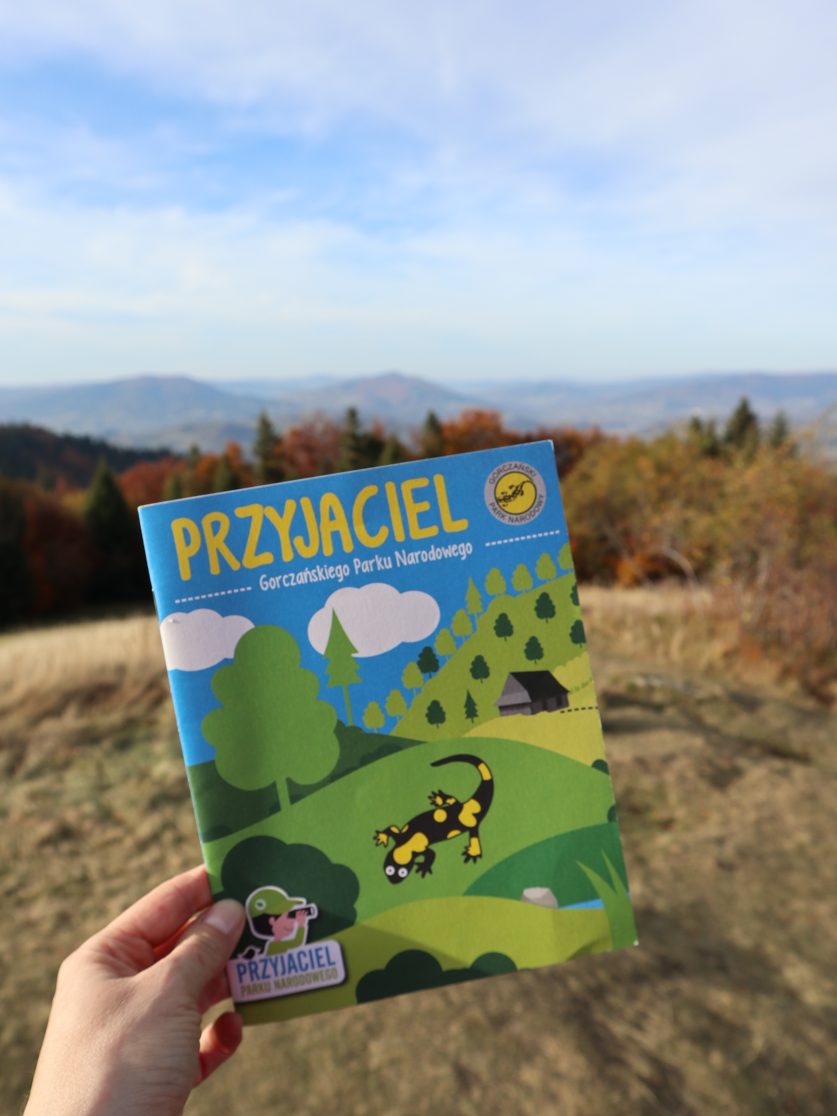 Gorce można też odkrywać z programem przyjacielparku.pl. My w na gorczańskiej Polanie Trusiówka (ale można tez w innych punktach parku) odebraliśmy kiedyś książeczkę. Rozwiązujemy zadania a w nagrodę można odebrać medal! To też świetna forma zachęty dla najmłodszych oraz umilenia im czasu wędrówki.