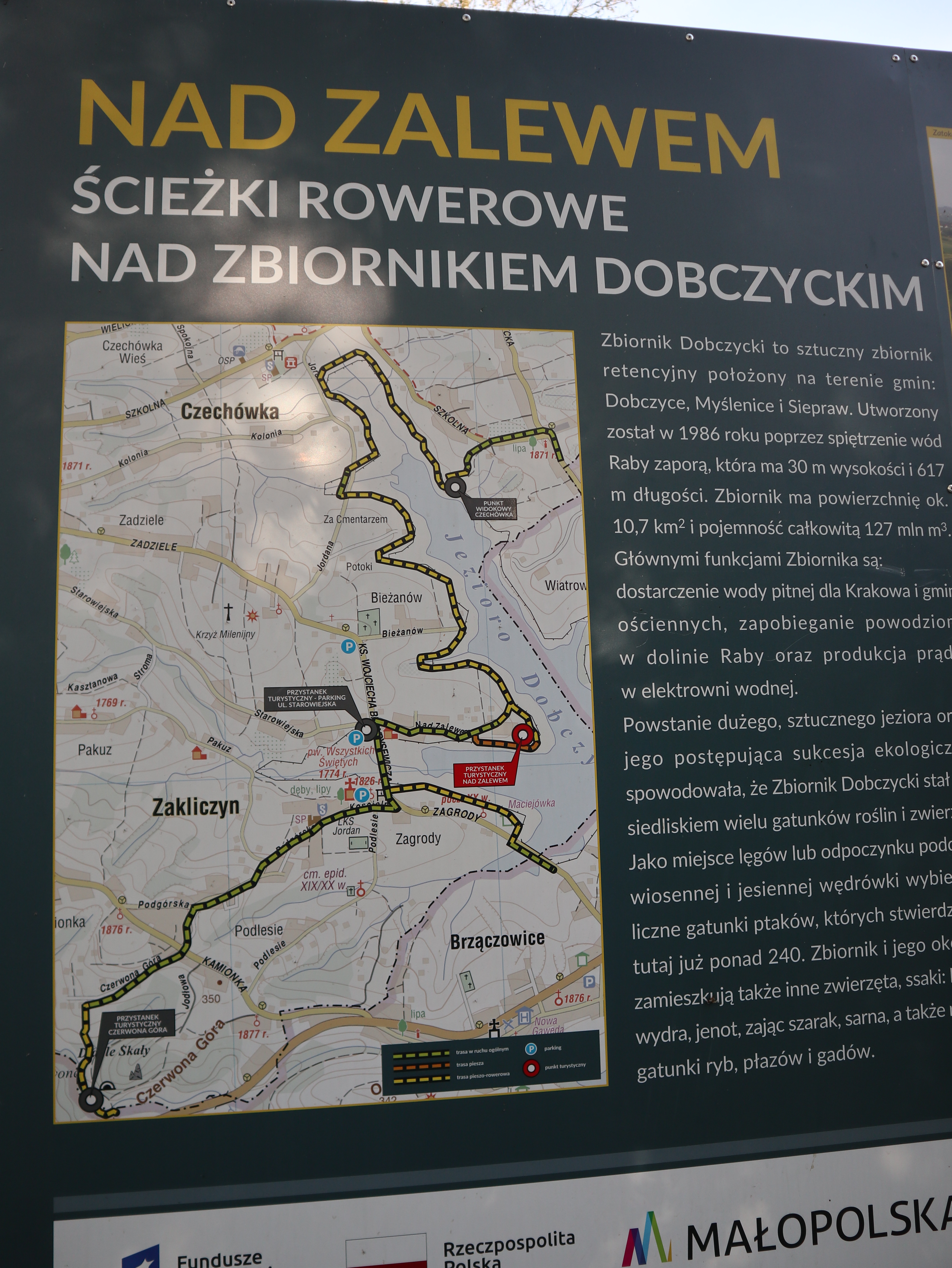 W 2022 roku zakończono realizację projektu, w ramach którego powstało 9,5 km ścieżek pieszo-rowerowych wokół Zatoki Zakliczyńskiej. Trasy te prowadzą przez malownicze tereny w pobliżu Zbiornika Dobczyckiego, oferując rowerzystom bezpieczne i komfortowe warunki do jazdy. Ścieżki są w większości odseparowane od ruchu samochodowego, co czyni je idealnymi dla rodzin z dziećmi. Byliśmy tutaj po raz pierwszy, kiedy córka szlifowała swoje umiejętności jazdy na rowerze. To miejsce idealne, bo ścieżka jest spokojna, asfaltowa, a po jeździe mozna miło spędzić czas na placu zabaw.