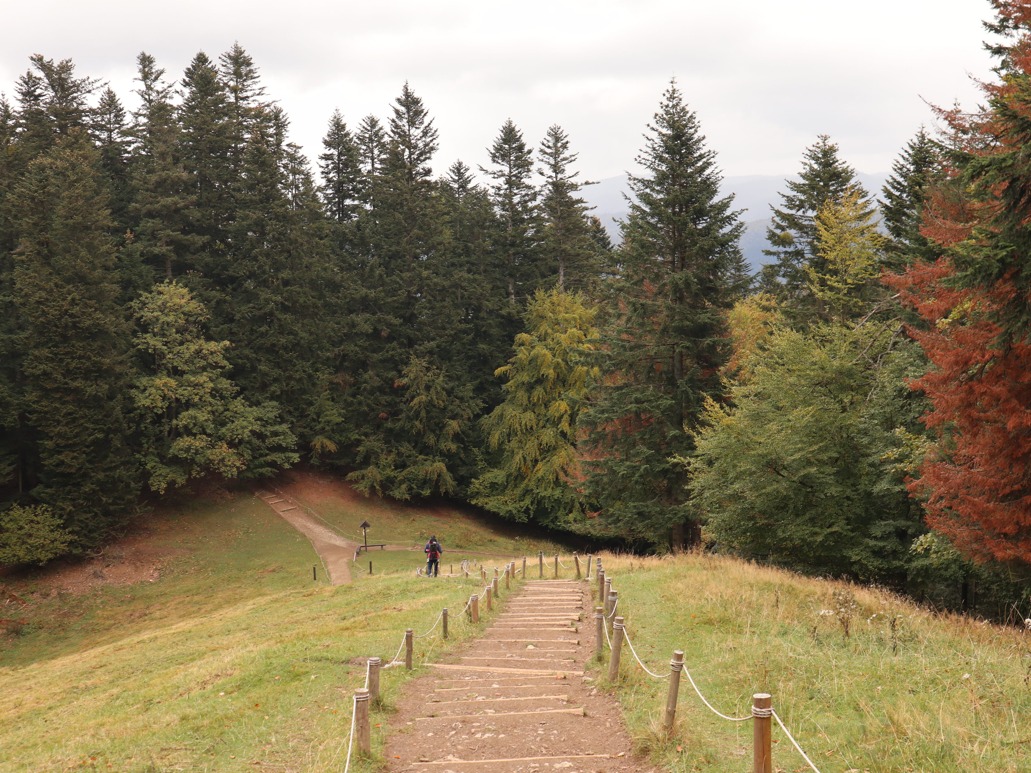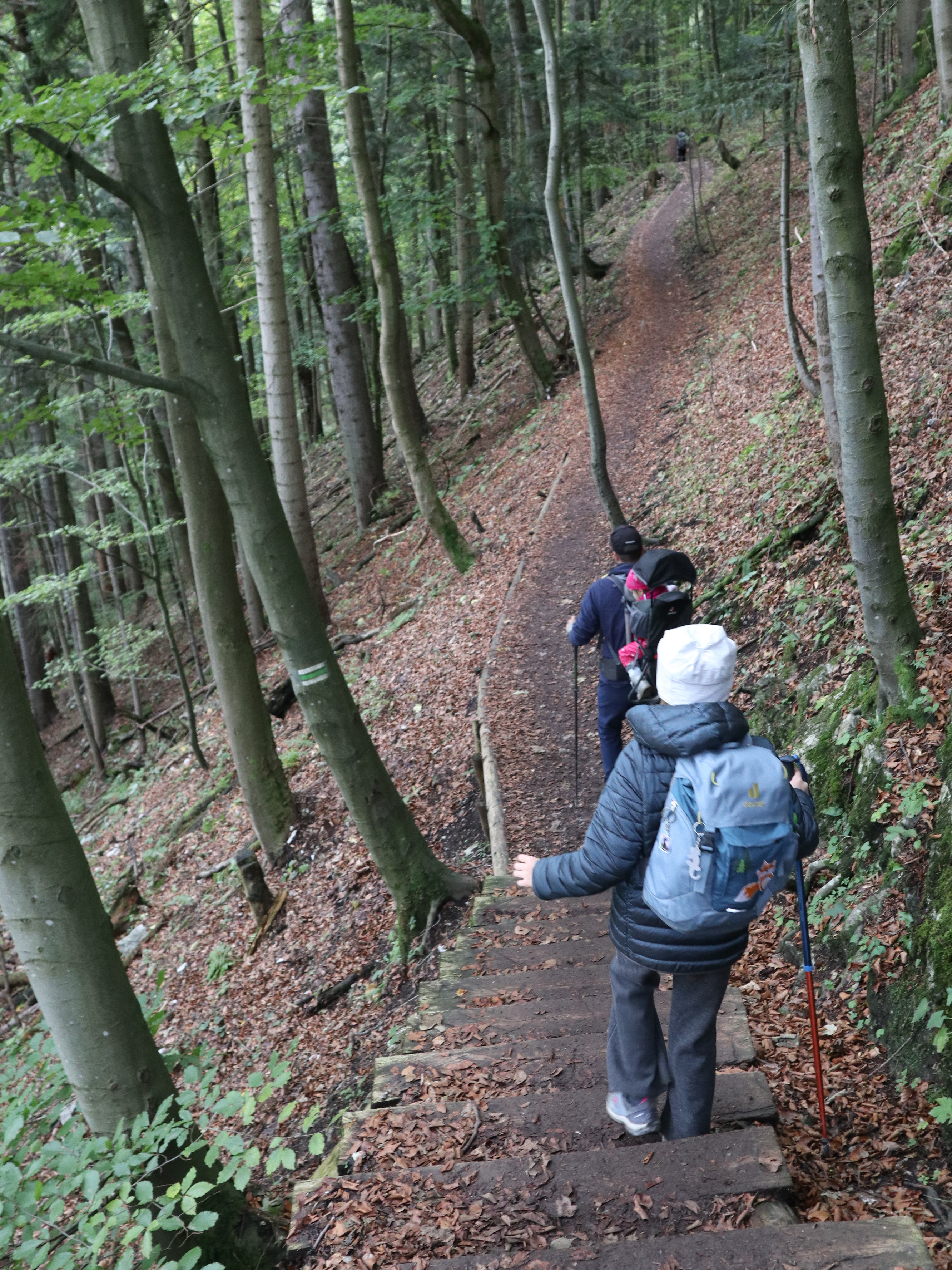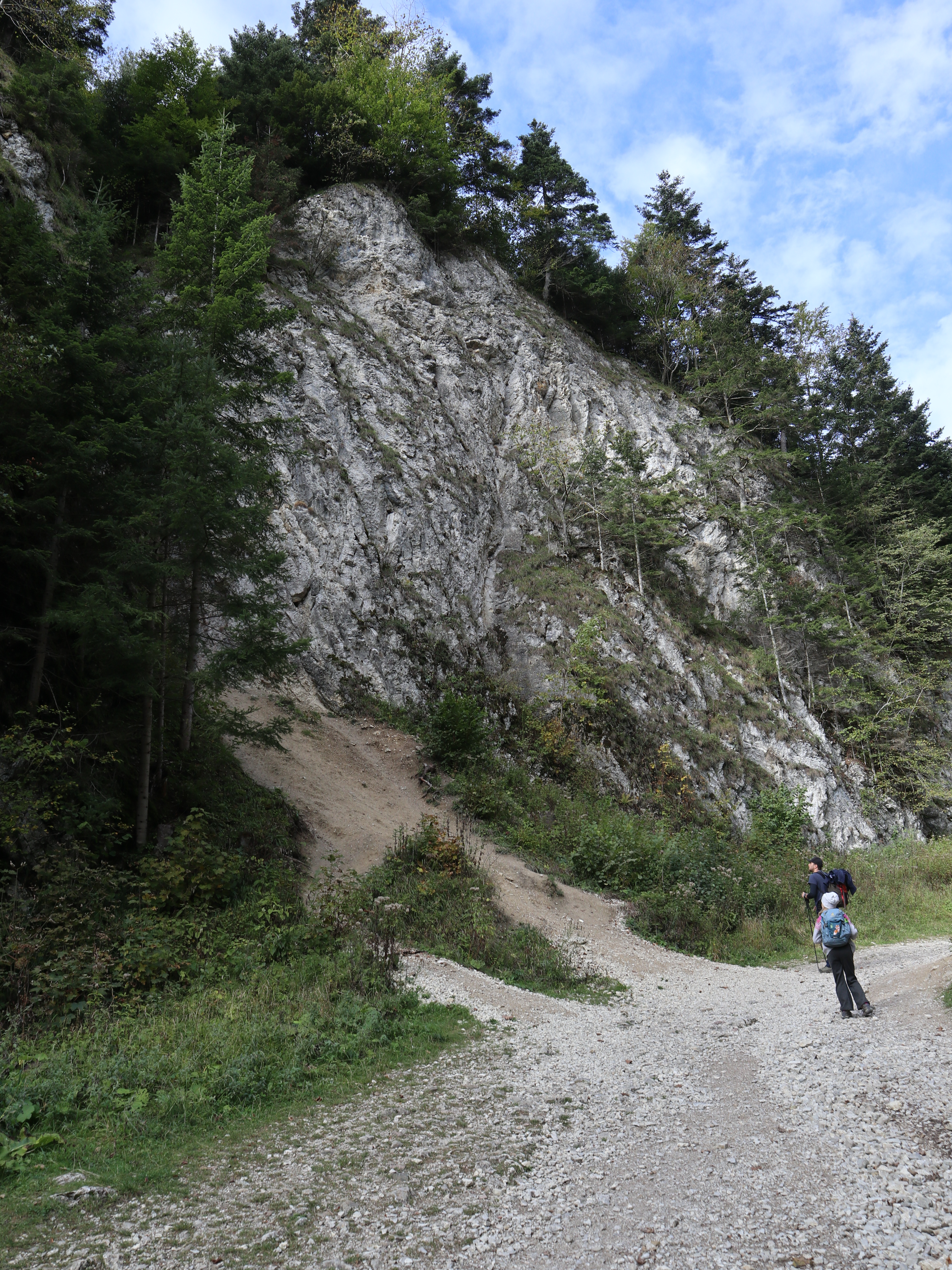 Poranek był idealny – błękitne niebo, chłodny, jesienny zapach lasu i pierwsze złote liście pod nogami. Szlak prowadził nas w górę najpierw przez piękny Wąwóz Szopczański. Chyba pierwszy raz szliśmy tędy, gdy było tak cicho, spokojnie i pusto. Można się było poczuć jak w krainie z bajki. Potem szlak wiedzie przez las – tutaj nie brakuje przygotowanych stopni, które na chwile znikają ciut przed Przełęczą Szopka. W tym miejscu z pięknym widokiem na ośnieżone już Tatry zrobiliśmy sobie przerwę. Coś na ząb, łyk ciepłej herbaty i wyruszyliśmy ostatni fragment pod górę.