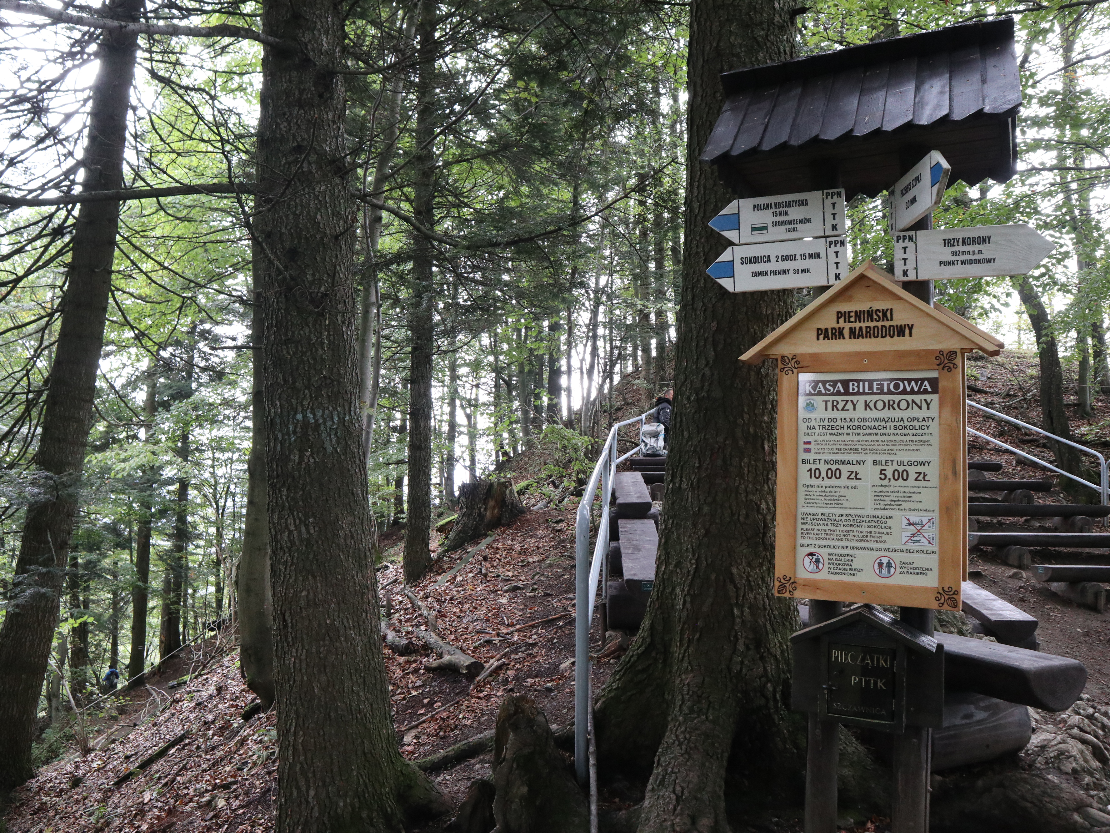 Tuż pod szczytem, zaraz przed wejściem na platformę widokową jest budka PPN, gdzie kupicie bilety. Normalny – 10 zł, ulgowy – 5 zł. Dzieci do lat 7 wchodzą za darmo. Tym razem weszliśmy bez czekania w kolejce, ale kilka lat temu w sezonie letnim, w tygodniu, gdy mieliśmy czekać godzinę – odpuściliśmy.