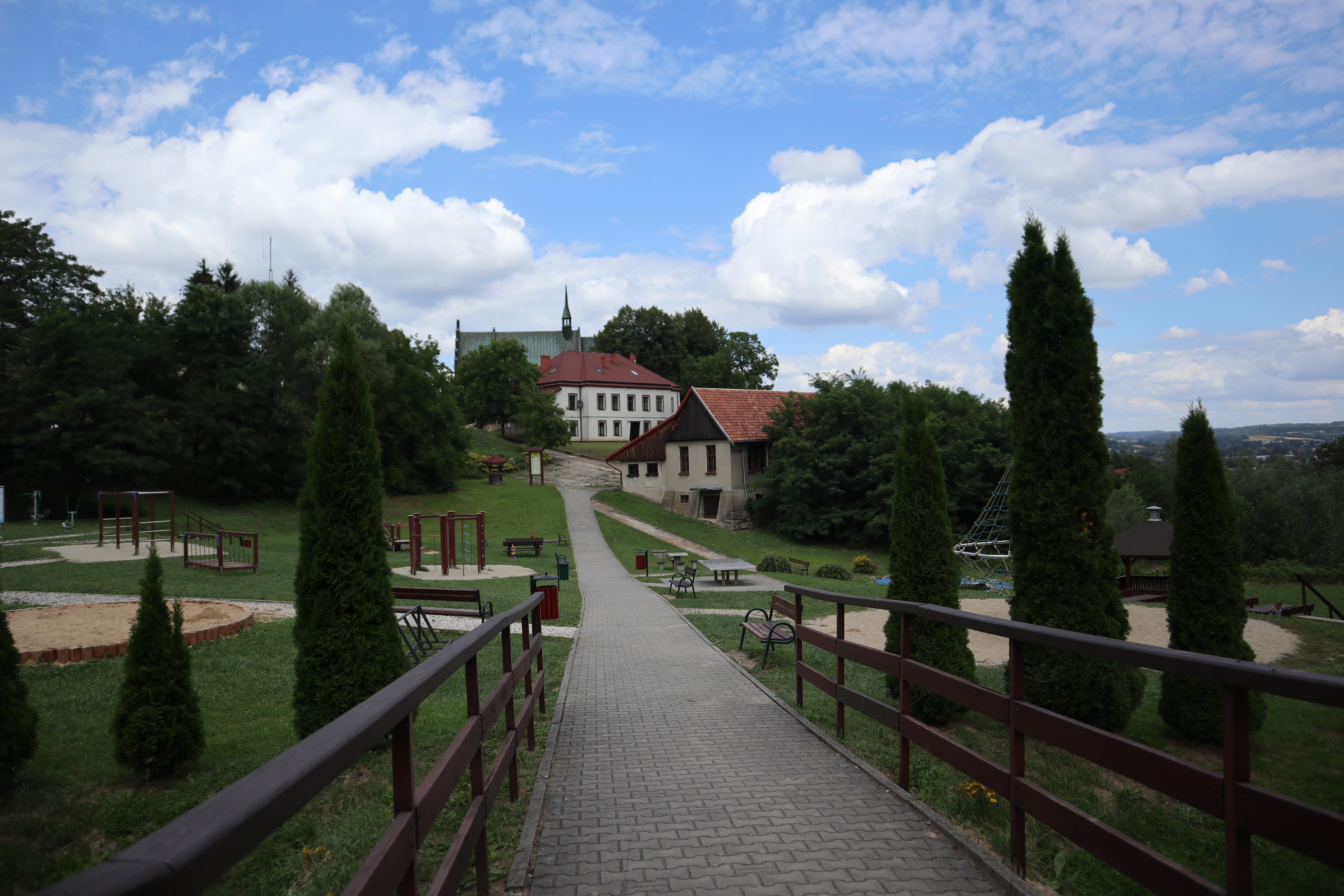 Zamek to nie jedyna atrakcja w tej okolicy. Tuż obok znajduje się miejski park Grodzisko, idealny na dłuższy spacer wśród zieleni. To przestronny i dobrze zagospodarowany teren, więc warto zarezerwować sobie trochę więcej czasu, by spokojnie odkryć jego uroki.