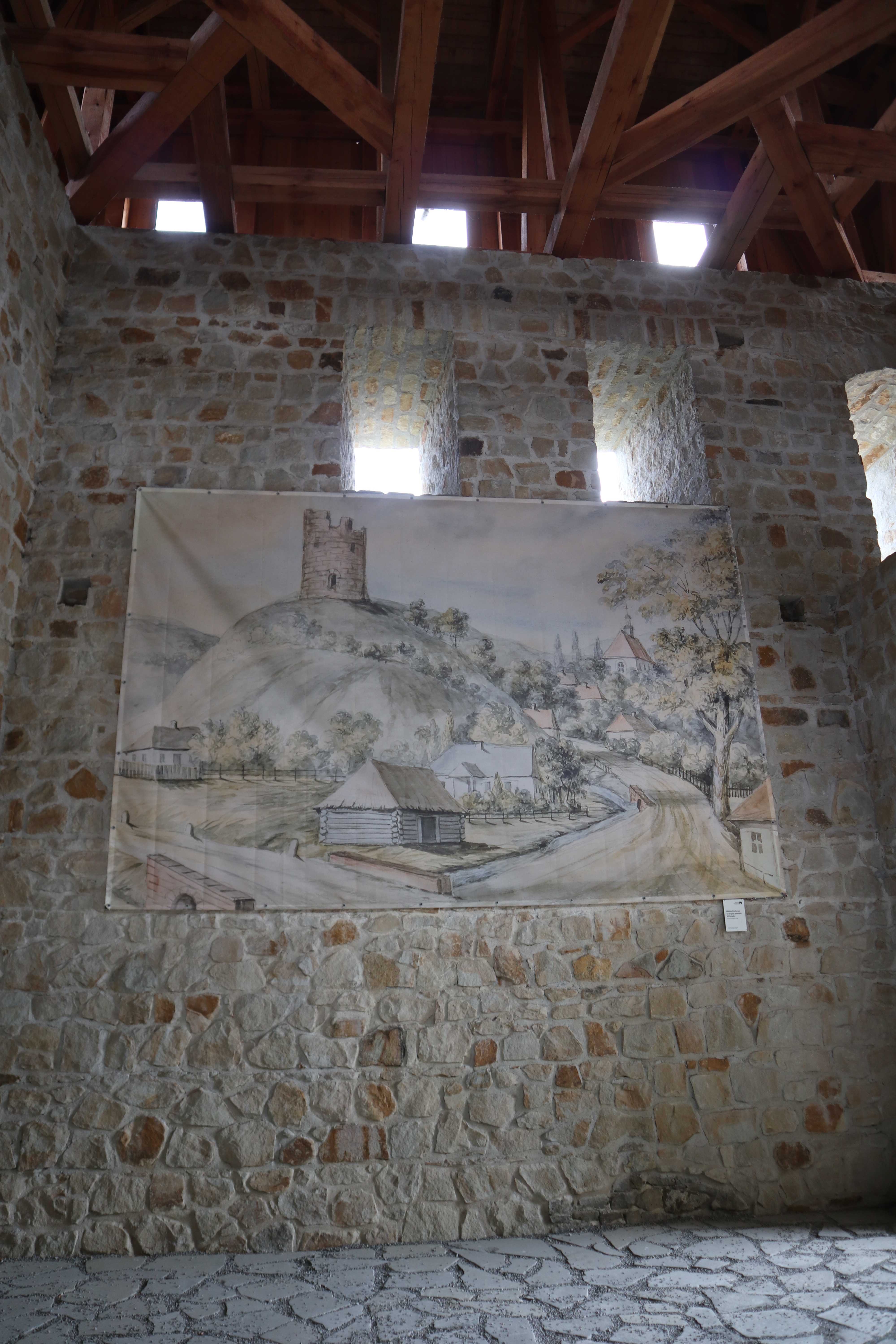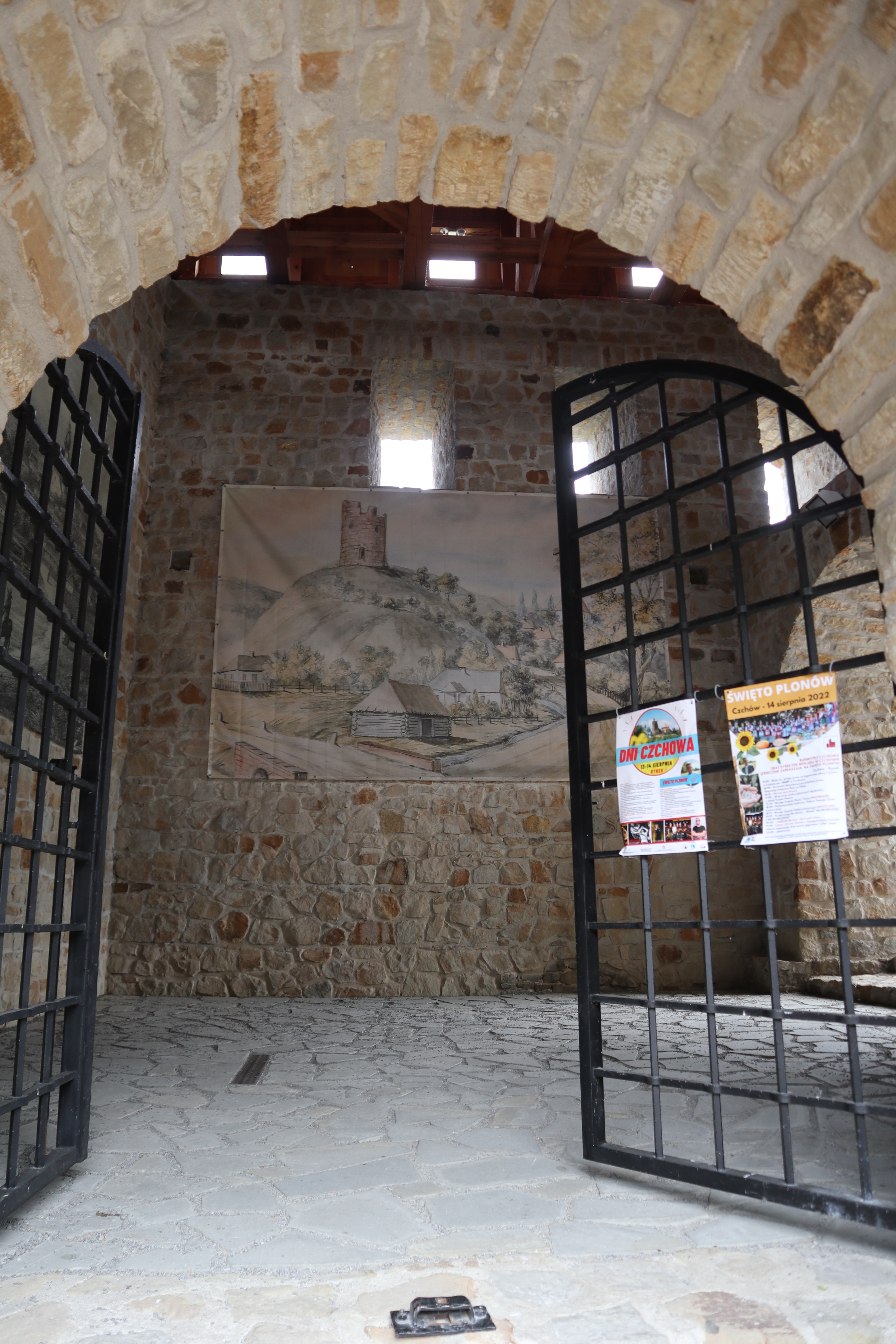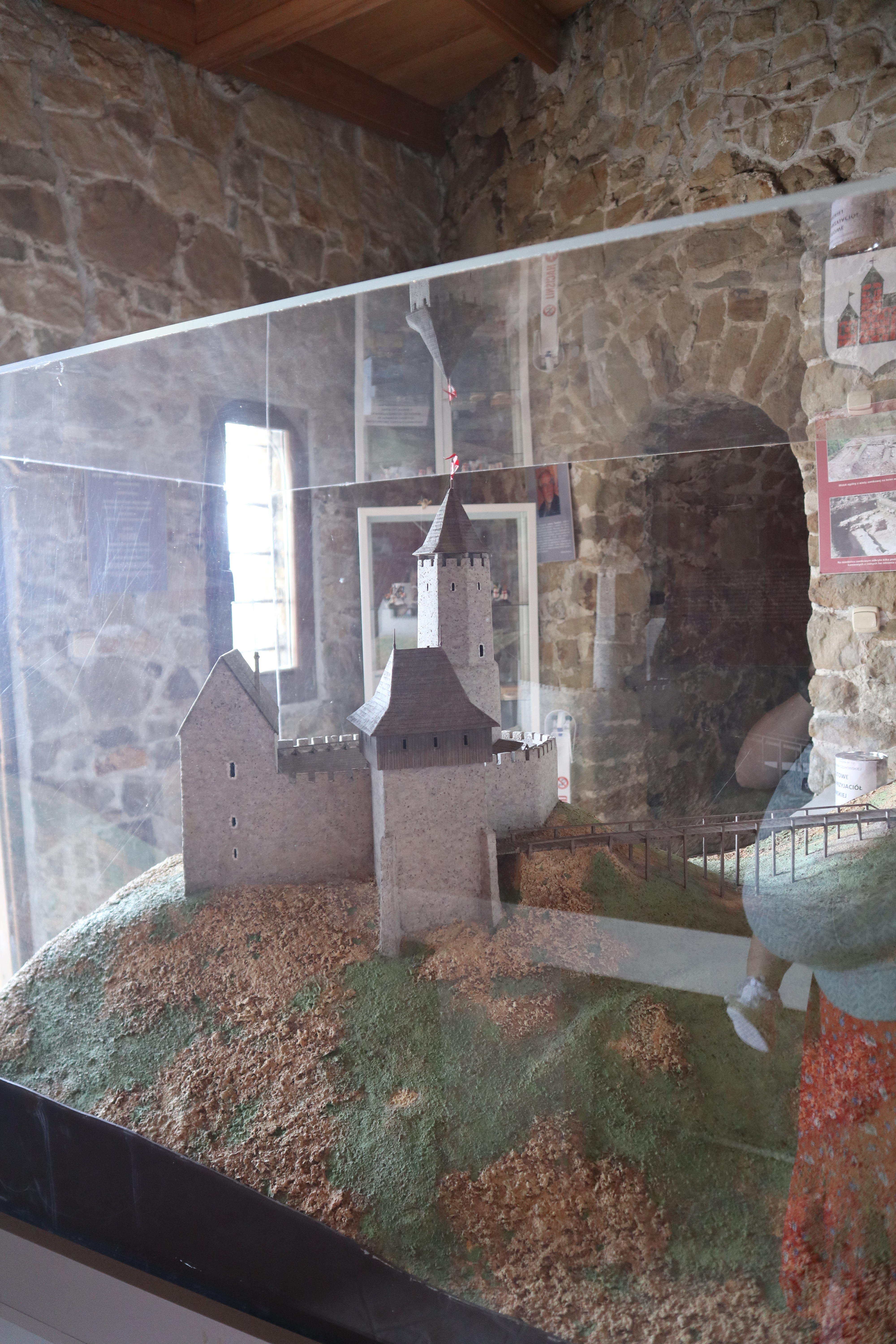 Wewnątrz wieży znajduje się makieta przedstawiająca zamek z czasów jego świetności oraz tablice edukacyjne przybliżające jego historię. Dla miłośników militariów przygotowano również niewielką wystawę broni i uzbrojenia, co z pewnością zainteresuje starsze dzieci i dorosłych.