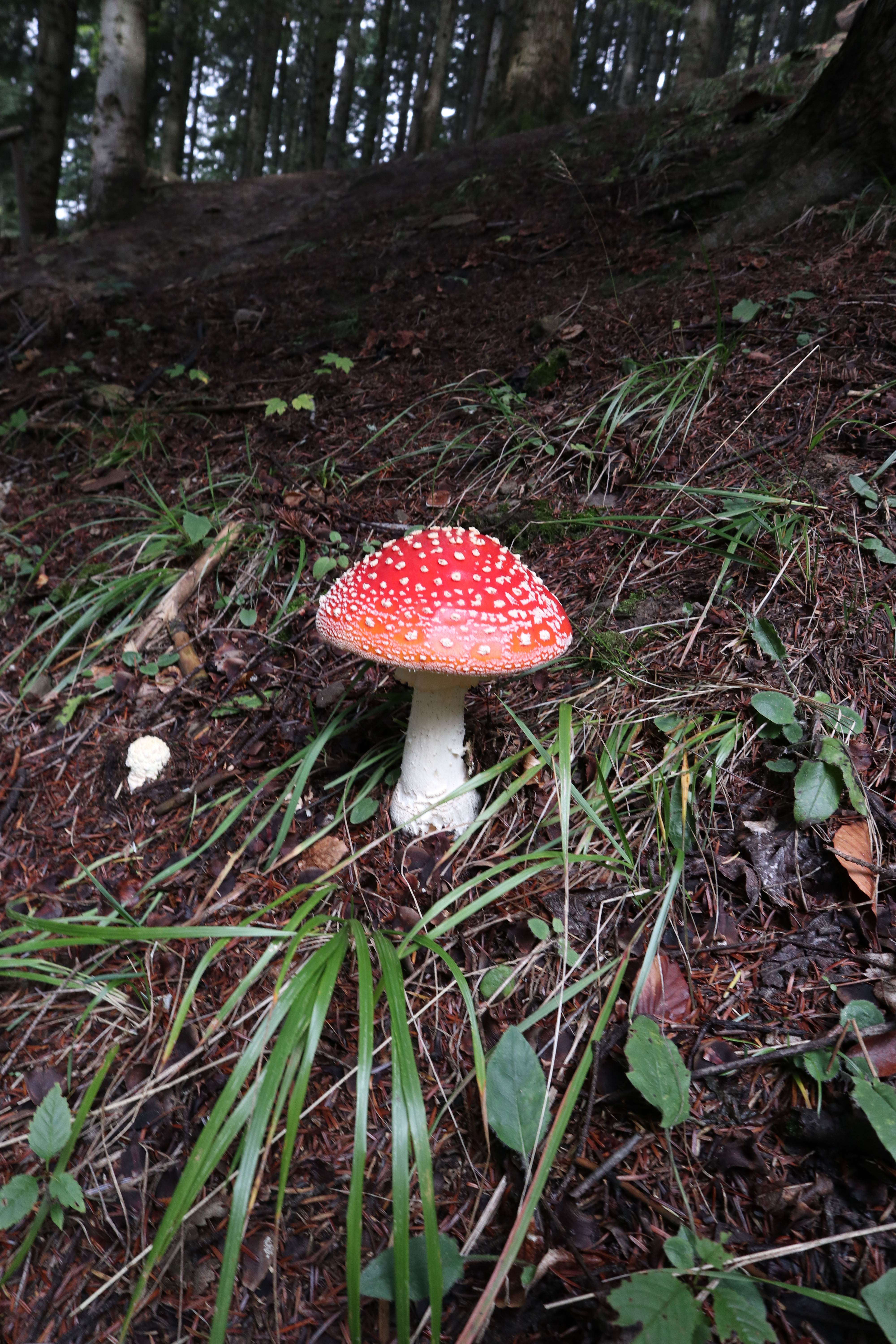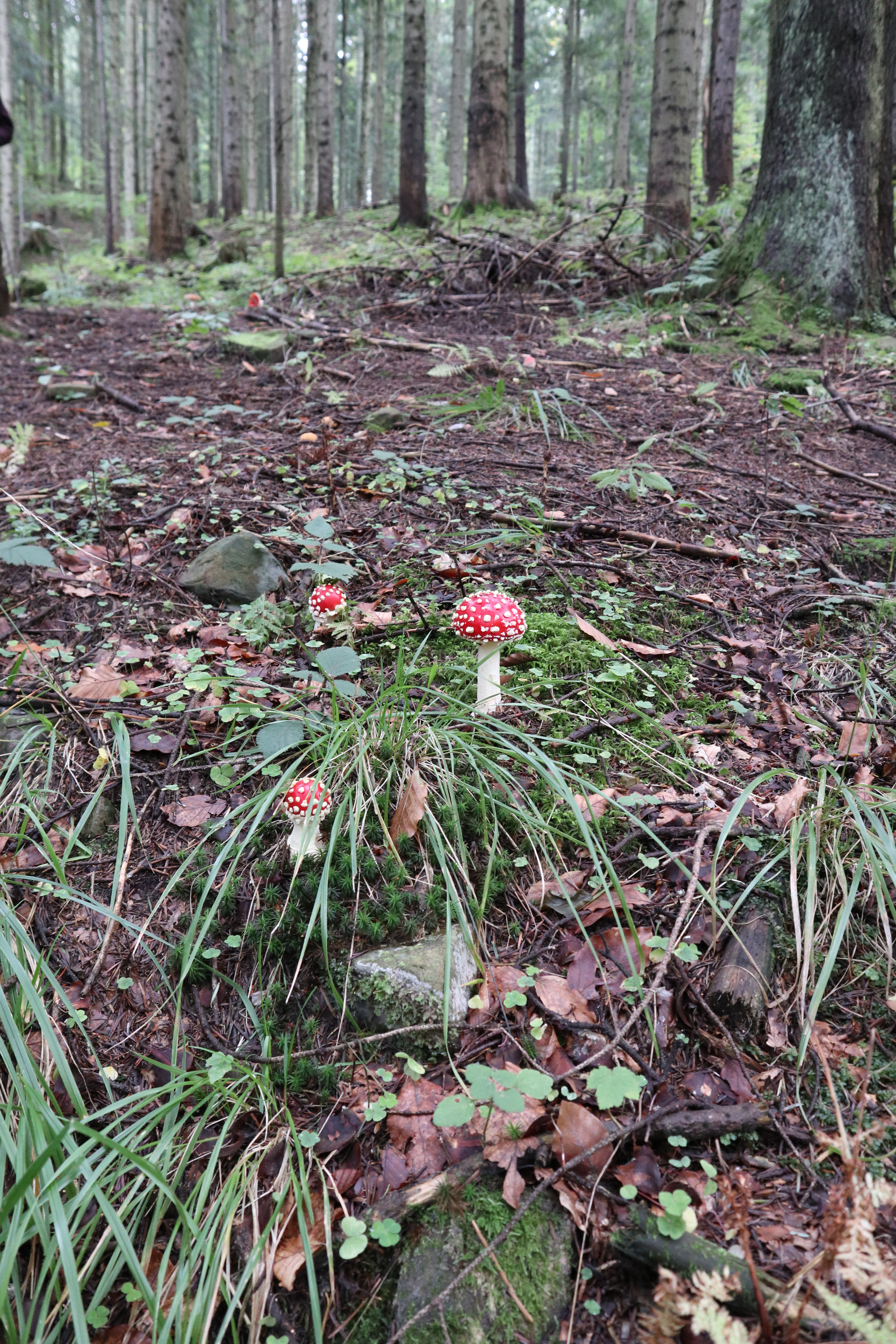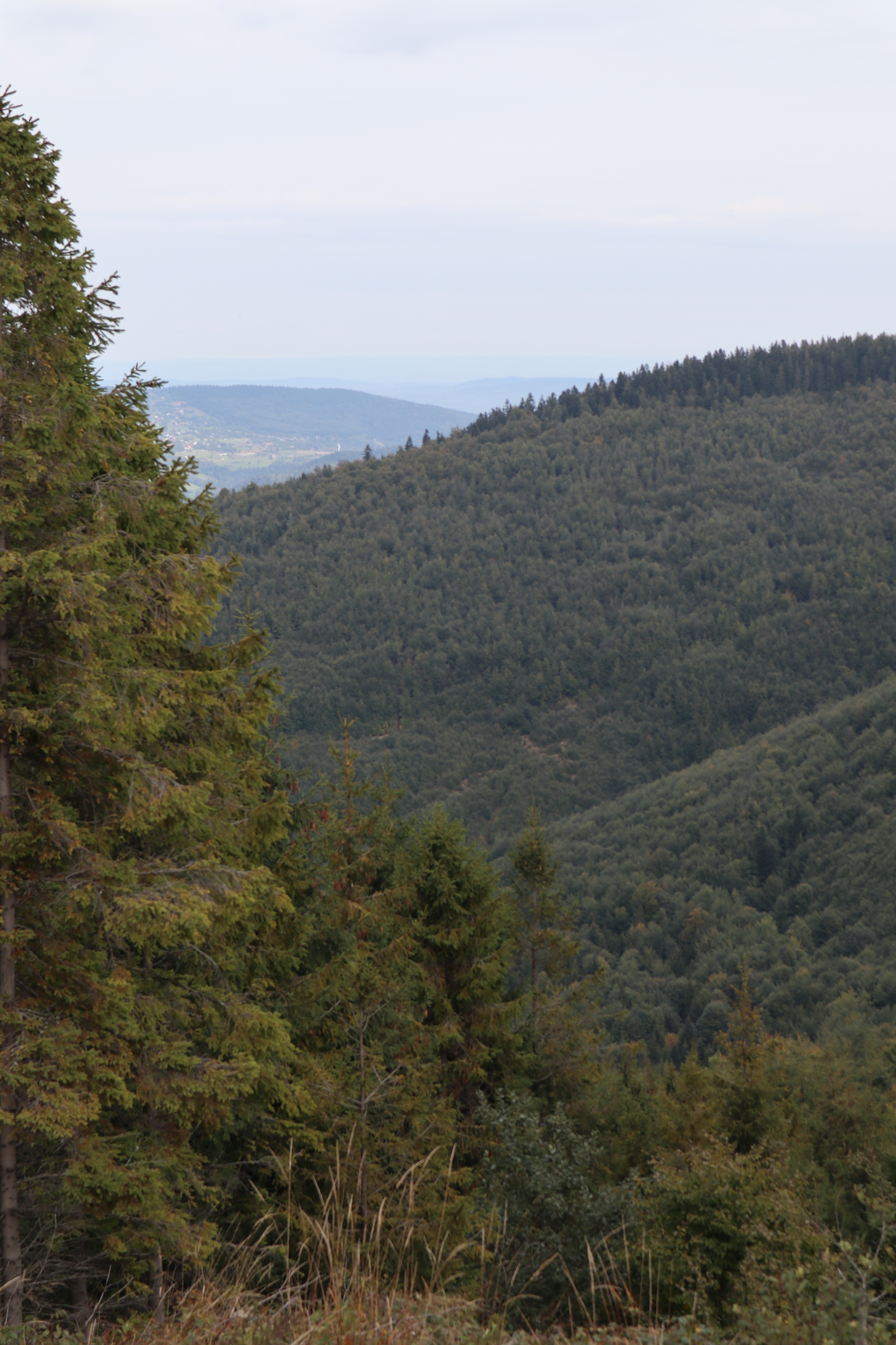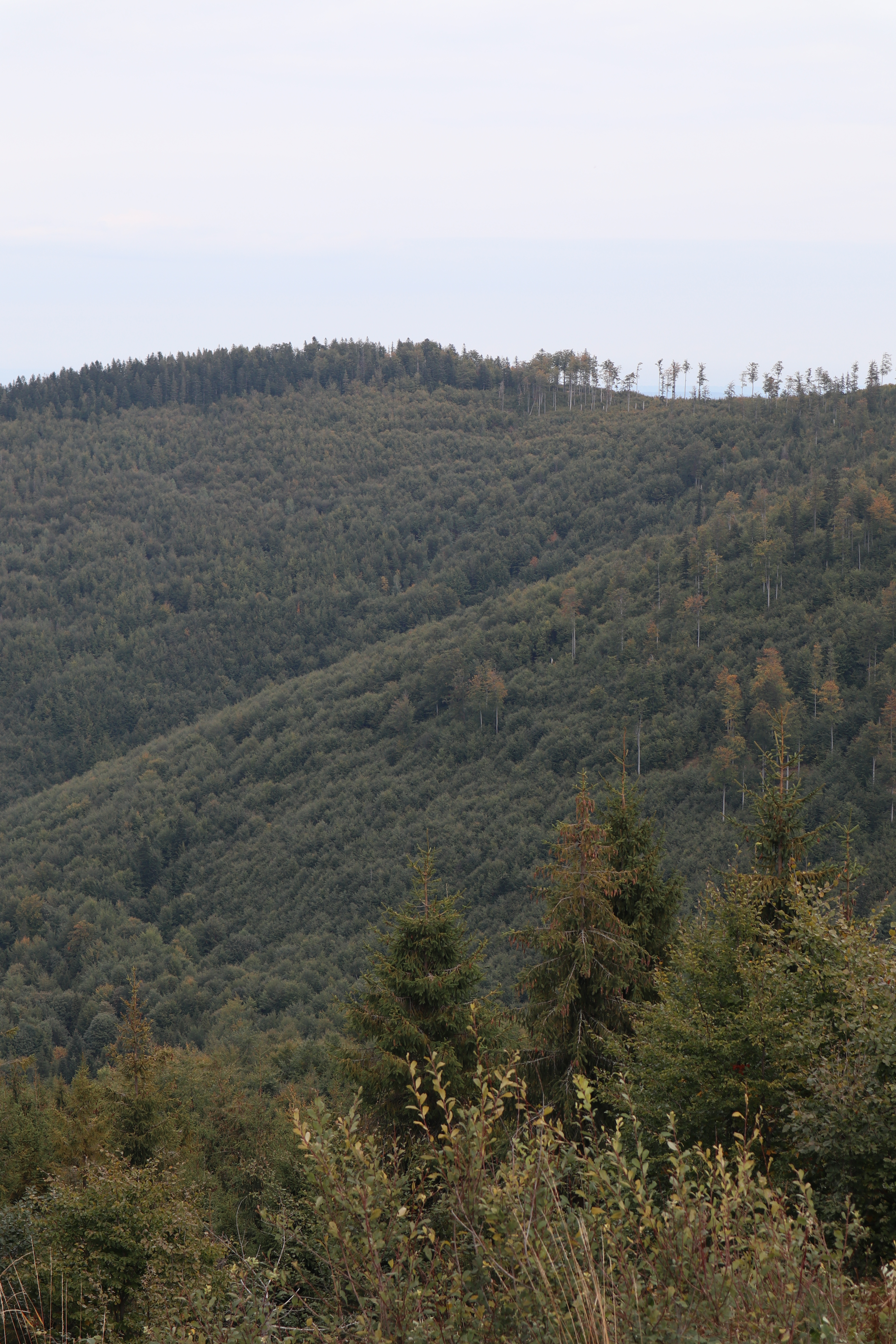 Dalej szlak wiedzie spokojnie przez las, szeroką ścieżką, wśród jesiennych kolorów i szelestu liści pod nogami. W kilki miejscach szlak wiedzie tuż obok ścieżek rowerowych MTB, ale głównie na początku. Wędrówka w jedną stronę zajmuje ok. 1,5 godziny, ale jeśli wędrujecie z kilkulatkami – warto doliczyć przerwy i zaplanować 2–2,5 godziny drogi na szczyt.