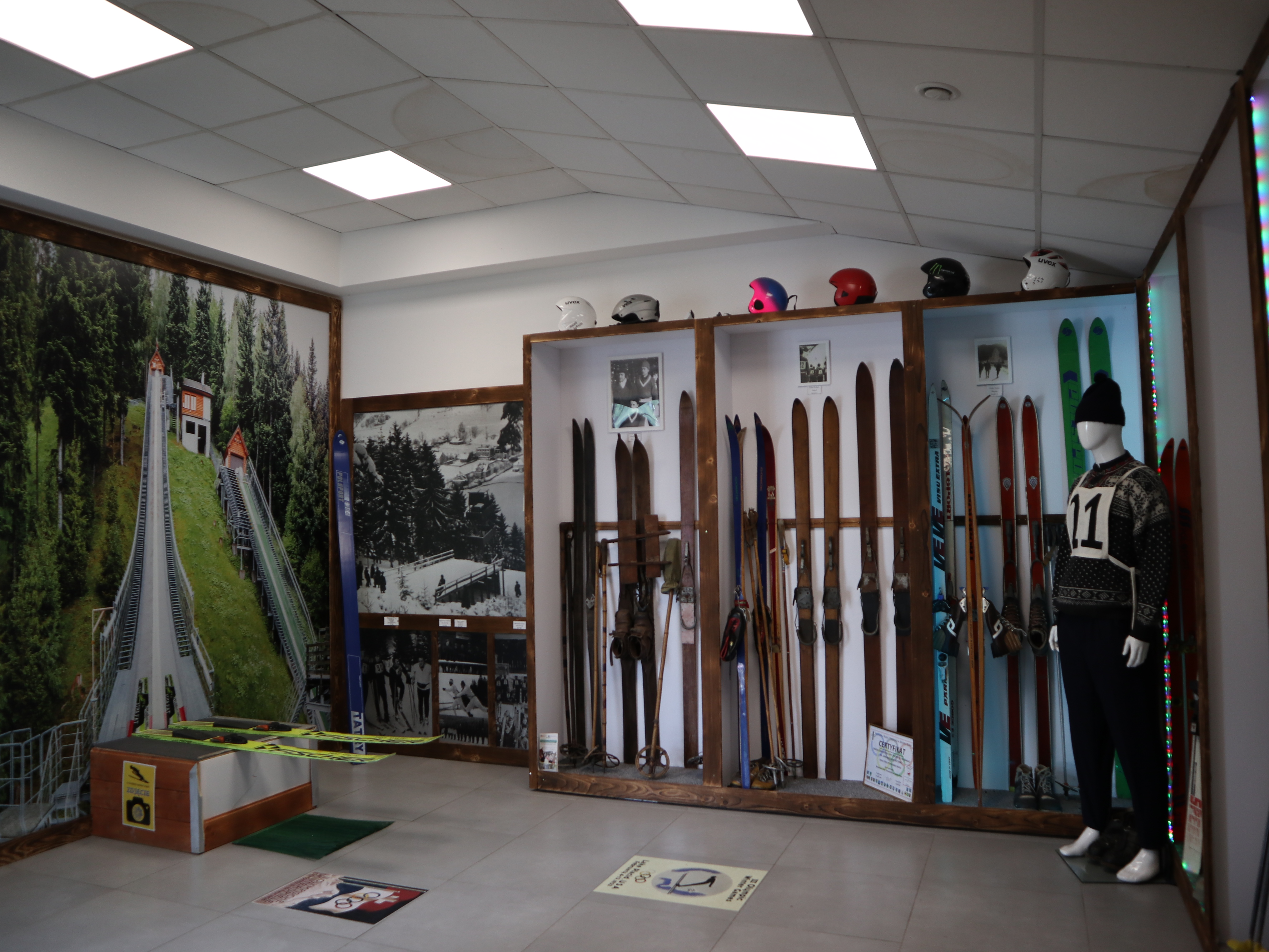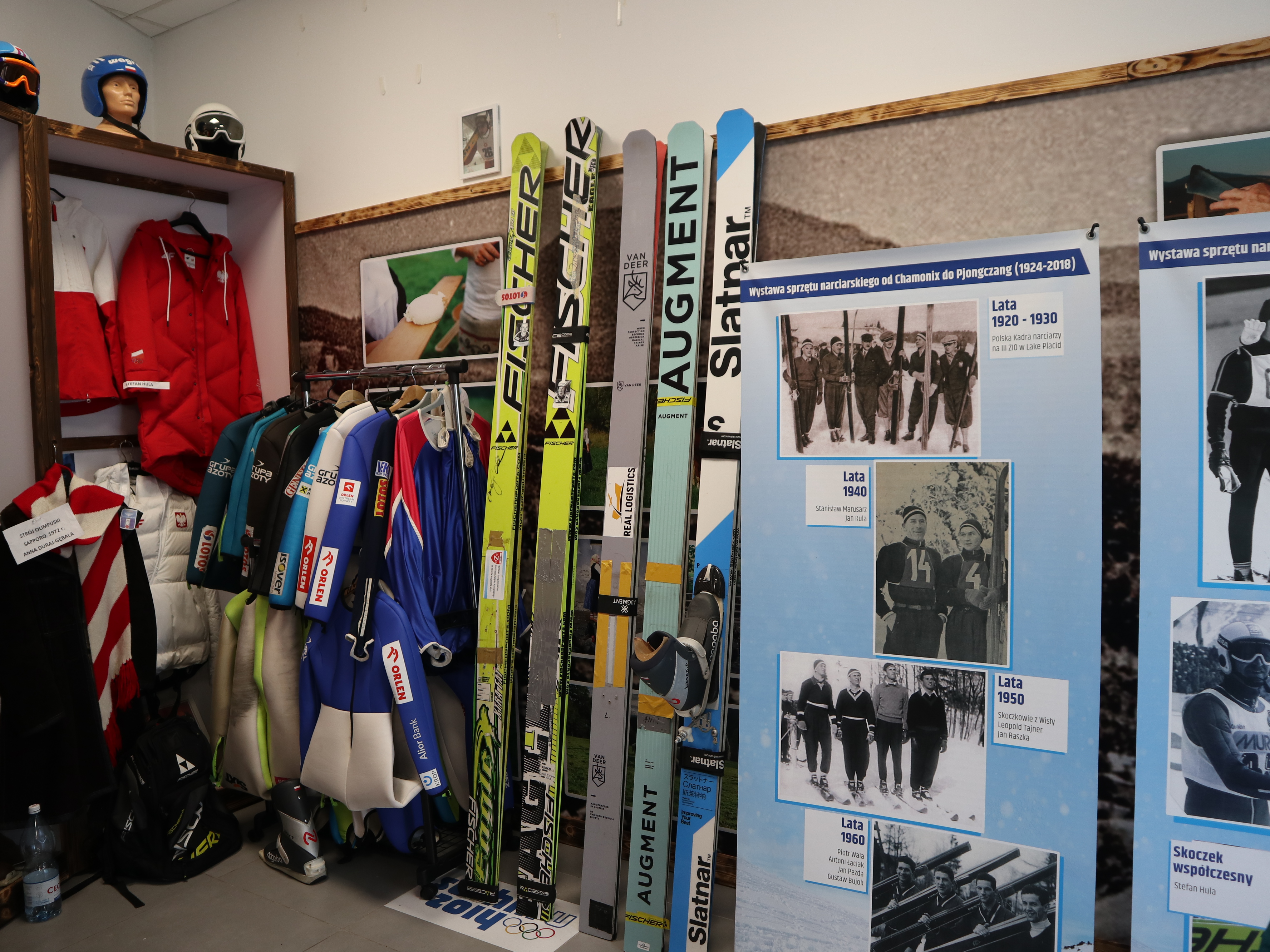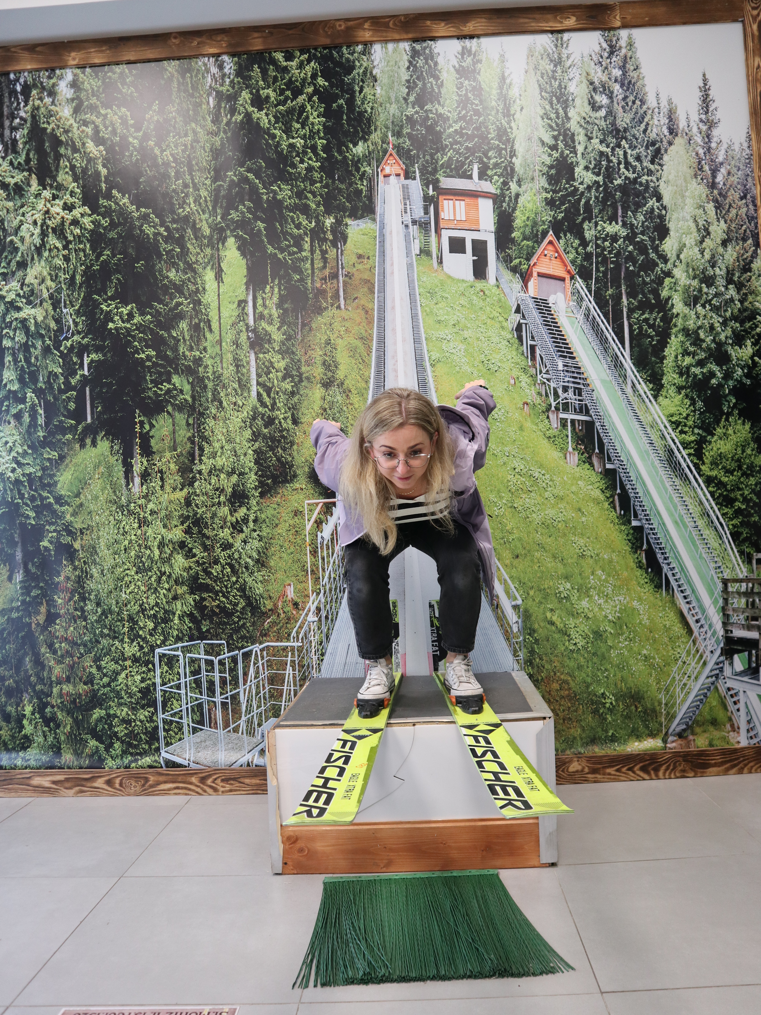 - Elementy interaktywne – m.in. platforma, która pozwala poczuć się jak skoczek narciarski. To bardzo trafiony sposób, żeby zaangażować dzieci i tych, którzy lubią doświadczać „na własnej skórze”.