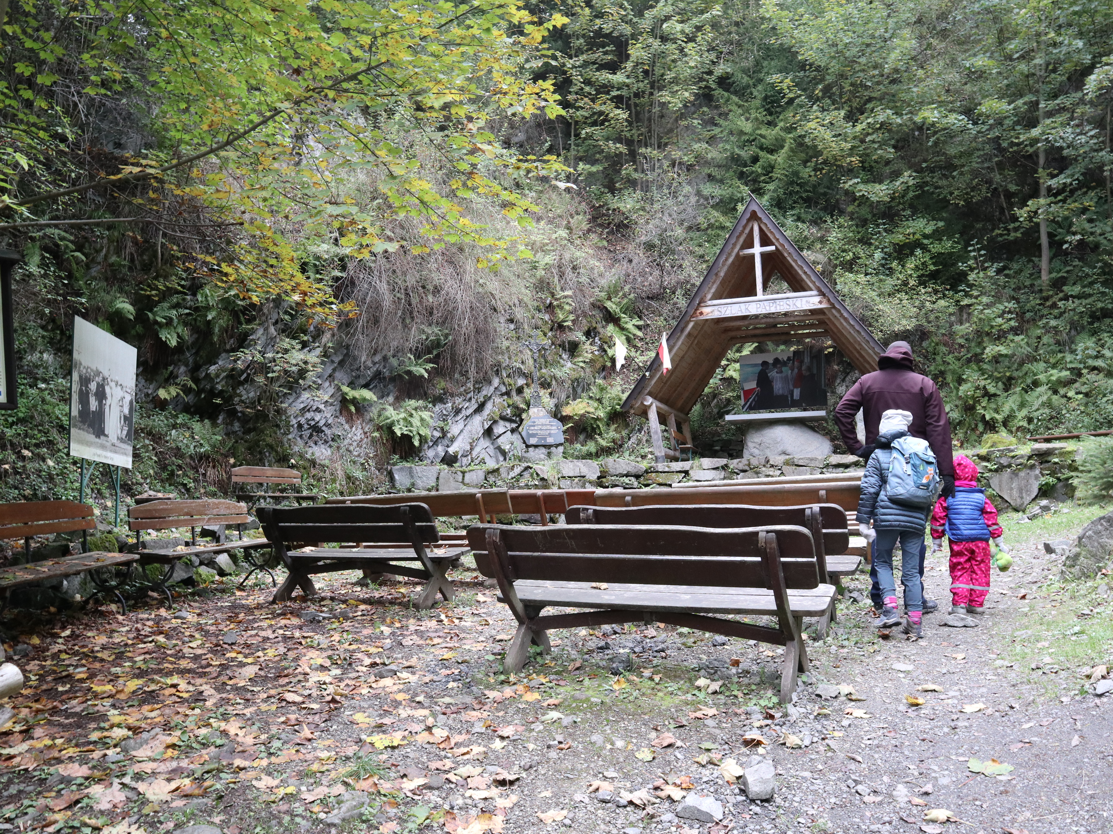Wąwóz swoją nazwę zawdzięcza wydarzeniom związanym z młodością Karola Wojtyły. Jest tu symboliczne miejsce pamięci, ale całość nie jest pompatyczna — to raczej kameralna przestrzeń, w której łatwo poczuć spokój. To także fragment dobrze przygotowanej ścieżki edukacyjnej, więc mijamy tablice z ciekawostkami przyrodniczymi i geologicznymi.