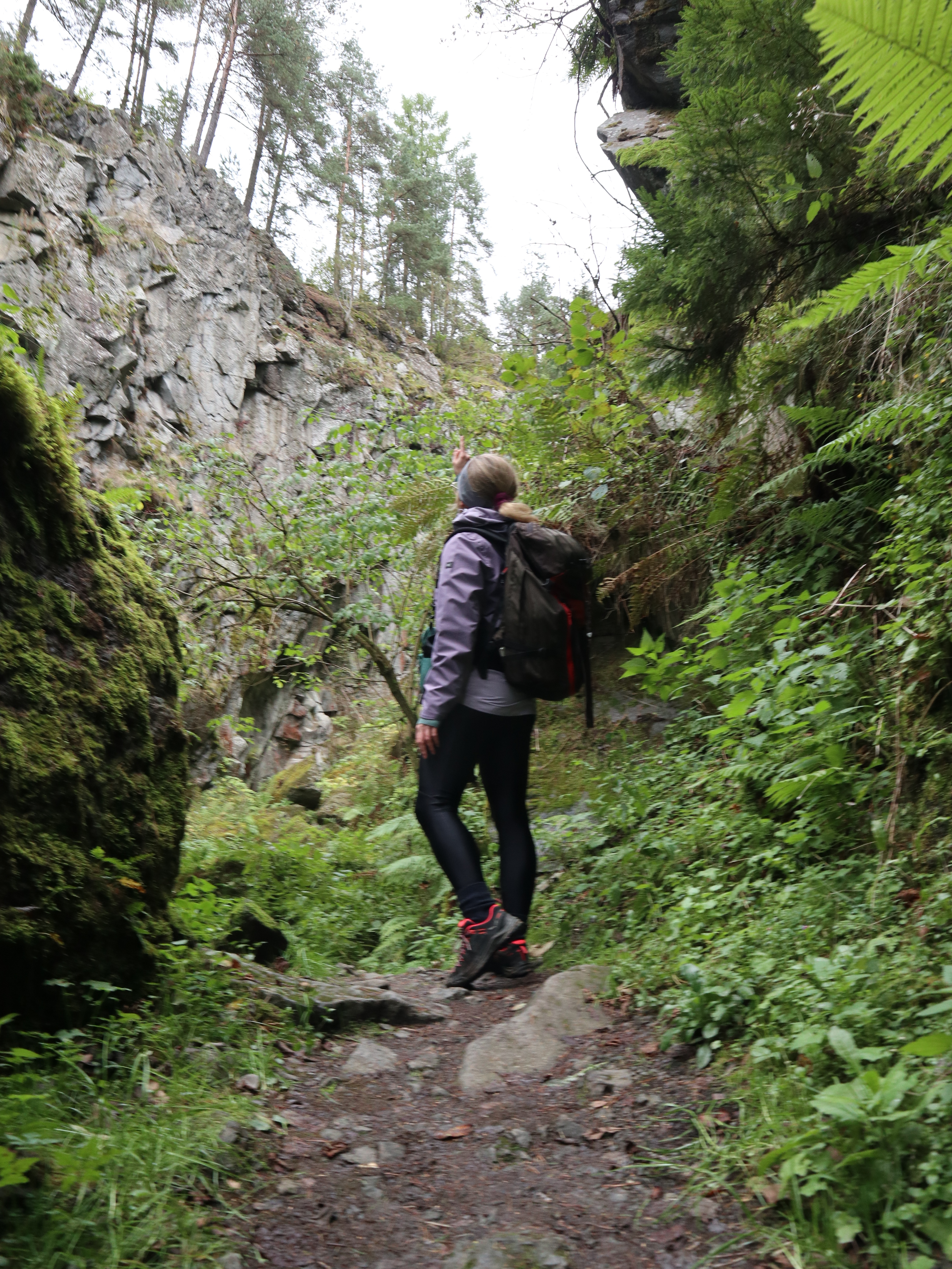 Pierwsza część trasy prowadzi przez dawny kamieniołom. Surowe, postrzępione ściany, wyraźne warstwy skał i głębokie szczeliny robią ogromne wrażenie. Miejsce ma niezwykłą atmosferę — niby blisko cywilizacji, ale czujesz się jak w dzikiej, opuszczonej przestrzeni.