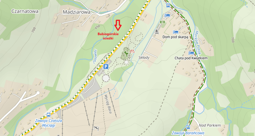 Jeśli jesteście tutaj, bo odkrywacie Babią Górę albo Mosorny Groń, a może wspinacie się na Kolisty Groń, albo Mędralową, to możecie połączyć górską wycieczkę z spacerem po Babiogórskich Ścieżkach. Czy przed czy po dłuższym szlaku, możecie z dziećmi w ten sposób utrwalić wiedzę o zwierzętach zamieszkujących okolicę. Naprzeciwko ścieżki jest spory plac zabaw. Tuż obok jest też parking więc zapewniam – spędzicie tutaj dłuższą chwilę.